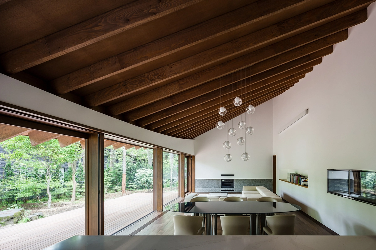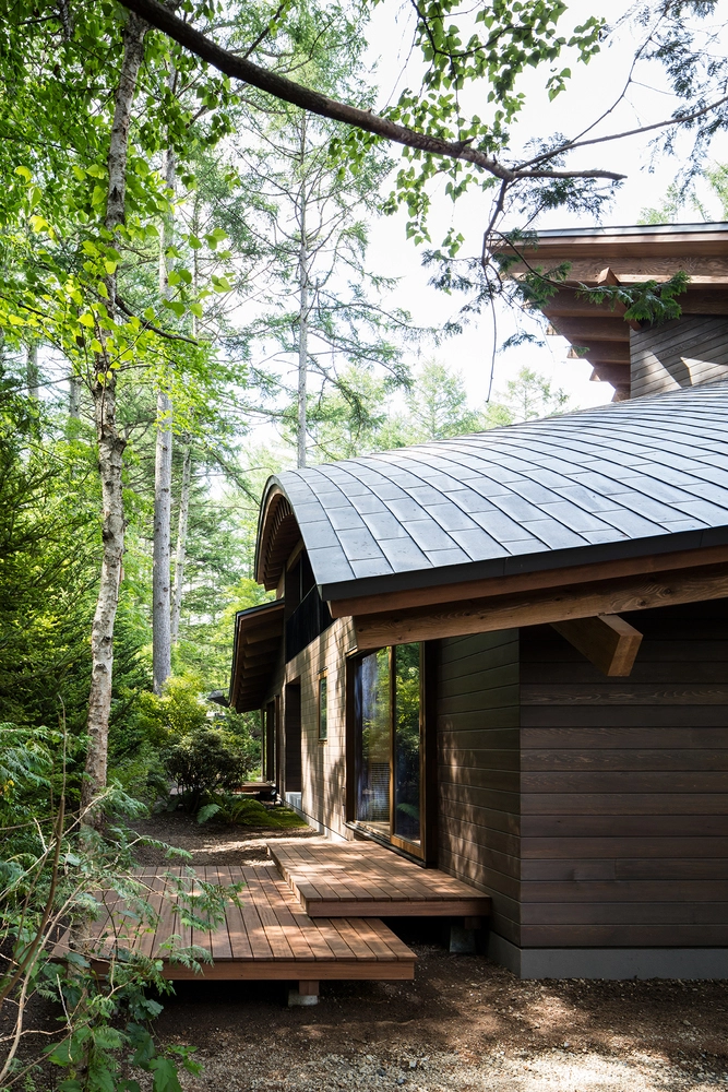 Cuatro hojas alabeadas inspiran a KIAS su Casa en Karuizawa