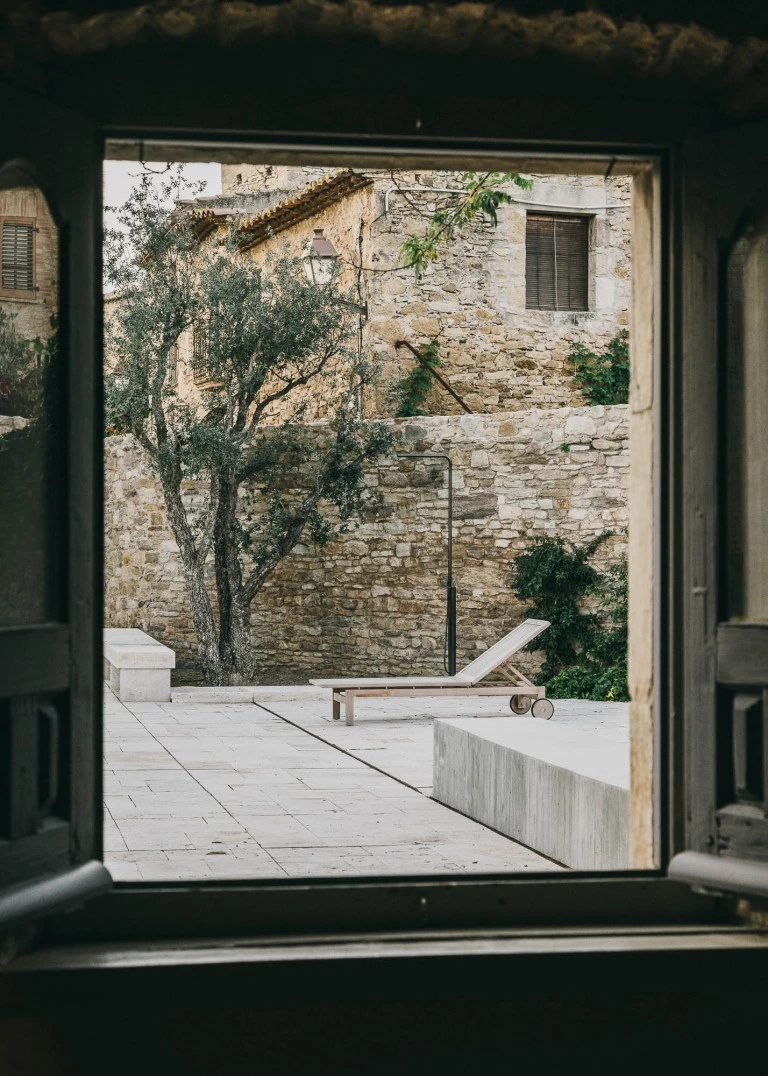 Sin duda, su castillo del siglo X es la herencia más importante de la villa. Un majestuoso edificio compuesto por varias construcciones que poseen un patio común. El estudio barcelonés Mesura recibió el encargo de hacer de espacio exterior un jardín con terraza para el relax de los huéspedes de la casa de verano anexa.