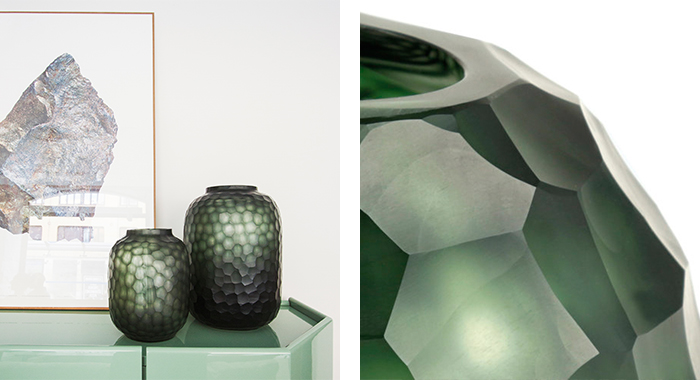 Si prefieres algo más artesanal puedes optar por el jarrón Bambola L, un jarrón de cristal tallado a mano perfecto para una decoración moderna en salones pequeños.