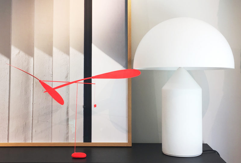 En el caso de que la luz tampoco entre adecuadamente por la ventana de tu salón, no te preocupes, que vamos a hacer que todas las miradas se centren en tus objetos de decoración, como esta escultura minimalista Móvil a dos hélices cuyo color neón rojo anaranjado será el centro de atención, además de dar un toque moderno a la estancia.