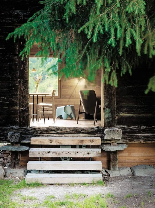Ubicada en el municipio suizo de Sarrayer, en una ladera del valle de Val de Bagnes y a una altitud de unos 1200 m sobre el nivel del mar, se encuentra esta aparentemente destartalada cabaña.