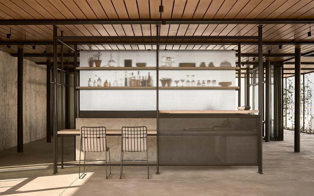 K-Studio decidió preservar los edificios existentes mediante una reconversión que incitara a la calma. A partir de acero, hormigón, vidrio y madera (como referencia a los antiguos barcos) se diseñaron unos perfiles ligeros para potenciar la presencia de lo ya construido.