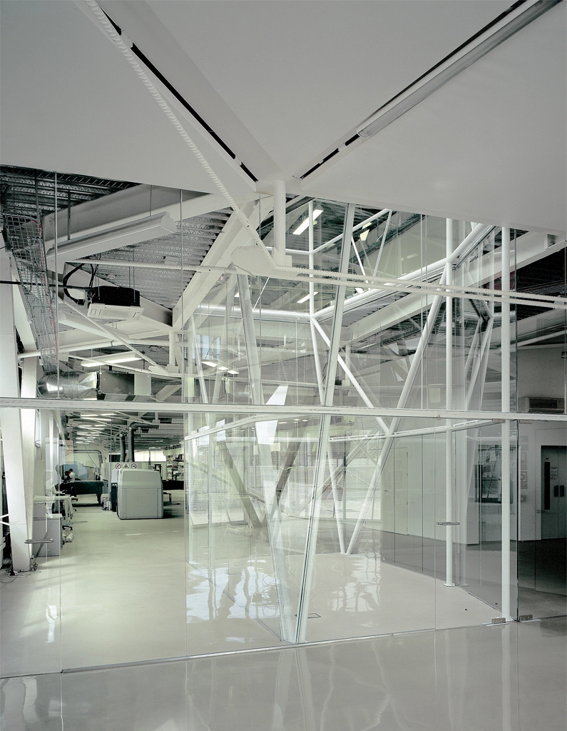 Como buena parte de las compañías del sector, está en constante renovación tecnológica, con horarios flexibles y ofreciendo servicios al público las 24 horas. En consecuencia, los arquitectos Cristina Díaz Moreno y Efrén García Grinda decidieron crear un híbrido entre nave y espacio terciario. Así pues, a pesar de sus dimensiones y acabados industriales, el interior posee unas condiciones ambientales y de iluminación controladas para preservar los equipos.