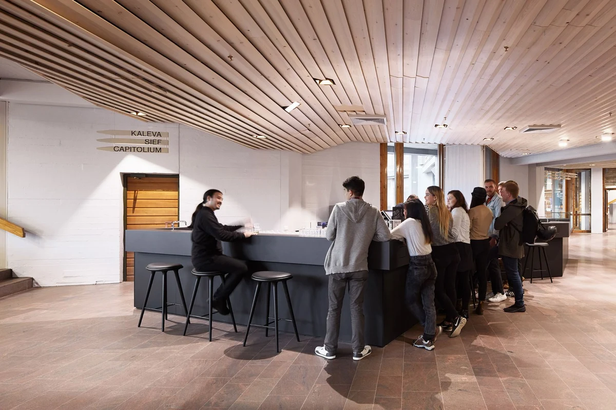 Así mismo, el edificio acoge al personal administrativo de la universidad y cuenta con varios cafés y restaurantes que atienden a toda la comunidad académica y a los vecinos del barrio de Otaniemi. Un nuevo servicio que acentúa su vocación plural y participativa para beneficio de toda la comunidad.