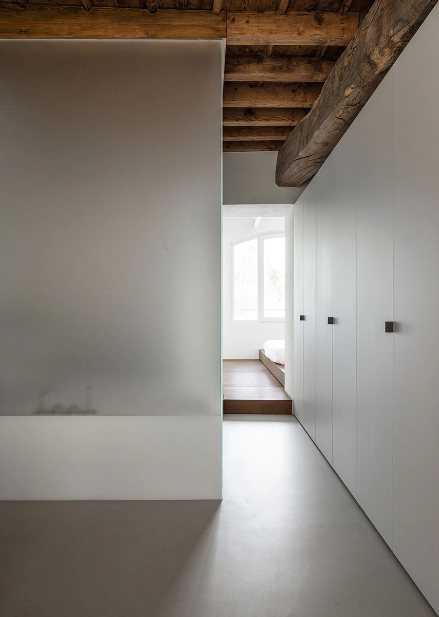 Destaca la secuencia de cinco ventanas abovedadas en la fachada nordeste, que proporcionan una vista estupenda de Varese. Como la luz incide con fuerza durante las primeras horas de la mañana, suavizándose a lo largo del día, se eligieron paredes de cristal satinado para determinados tramos. Una forma genial de llevar luz difusa a los baños, que pueden mutar así en grandes linternas al caer la tarde.