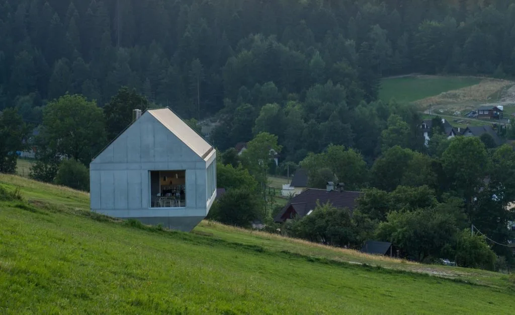 Cuando el arquitecto polaco Robert Konieczny, fundador del estudio KWK Promes, decidió construir su propia casa en una ladera escarpada de la localidad de Brenna, en el sur del país, se encontró con varios desafíos.