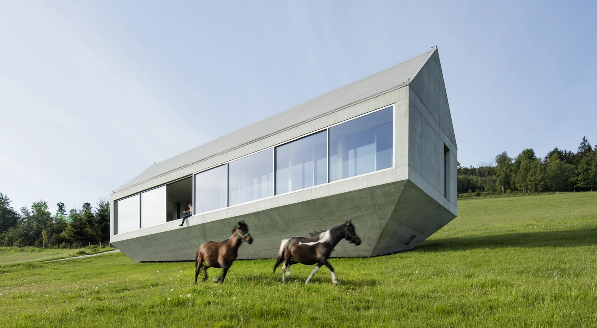 Todos estos detalles, unidos a la homogeneidad visual que aporta el hormigón visto en todo el perímetro y al tejado sin aleros, le dan un aspecto de arca moderna dispuesta a abandonar la pradera en cualquier momento.