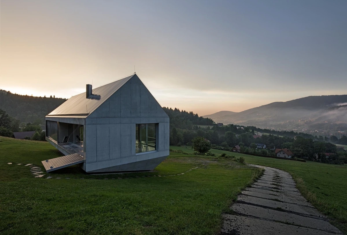 Cuando el arquitecto polaco Robert Konieczny, fundador del estudio KWK Promes, decidió construir su propia casa en una ladera escarpada de la localidad de Brenna, en el sur del país, se encontró con varios desafíos.