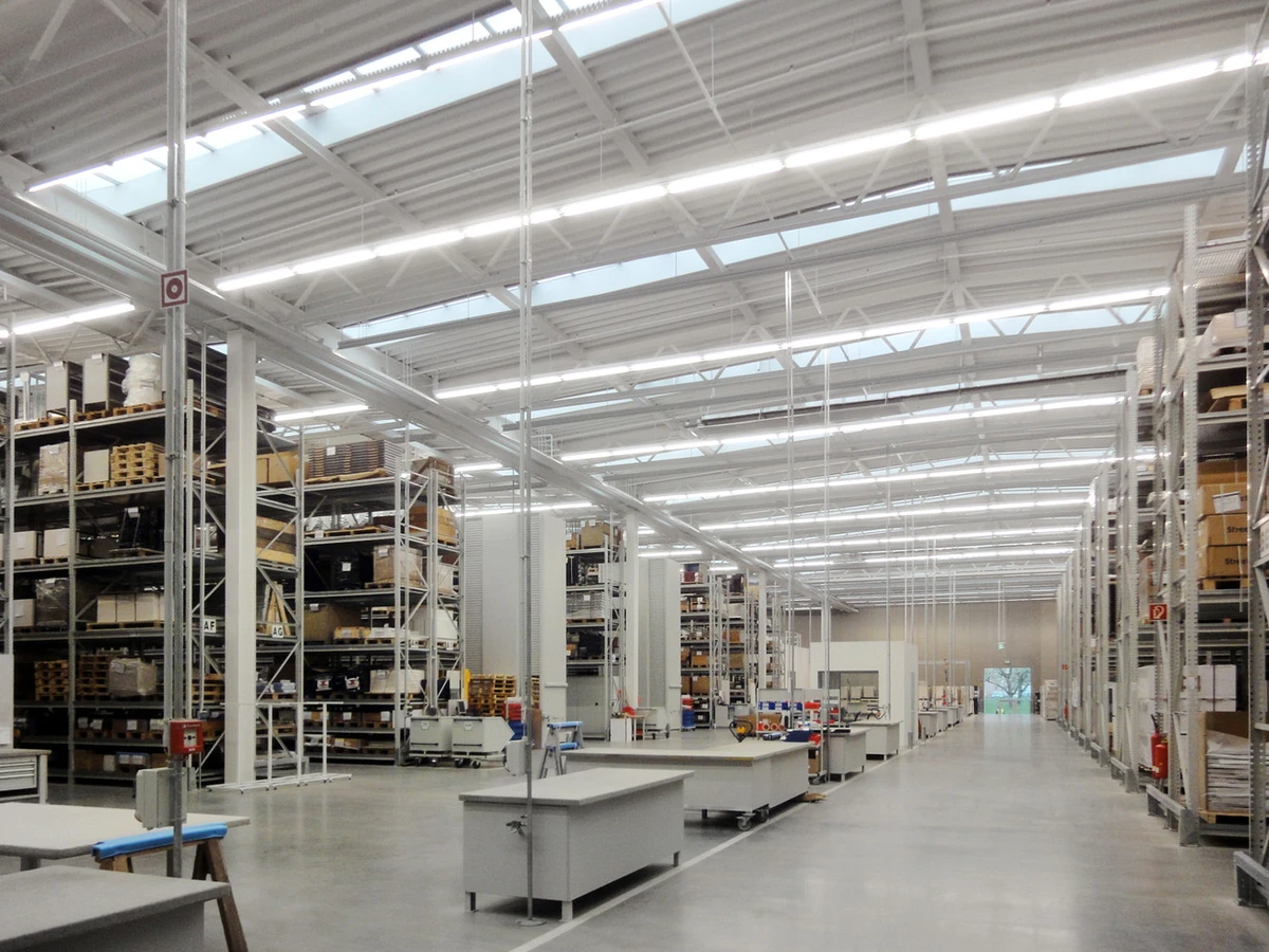 Esta ausencia de patrón también permite un encaje perfecto de las aberturas en la fachada (puertas, muelles y ventanas), distribuidas por todo el perímetro. Singularidad y espíritu funcional para una de las naves más representativas de Vitra Campus.