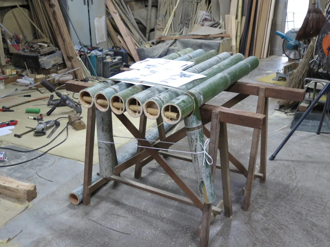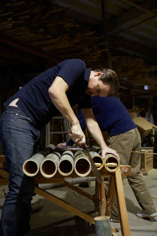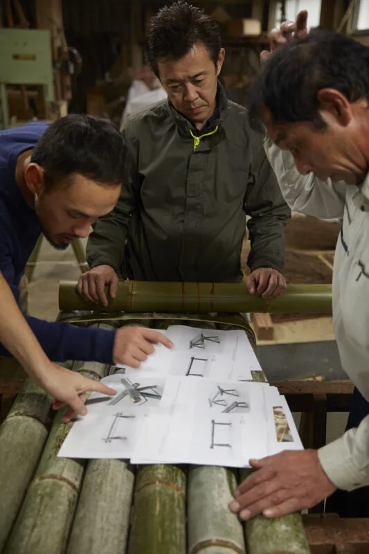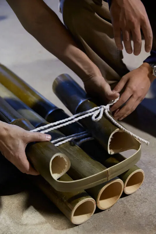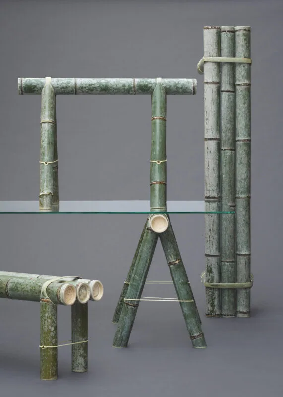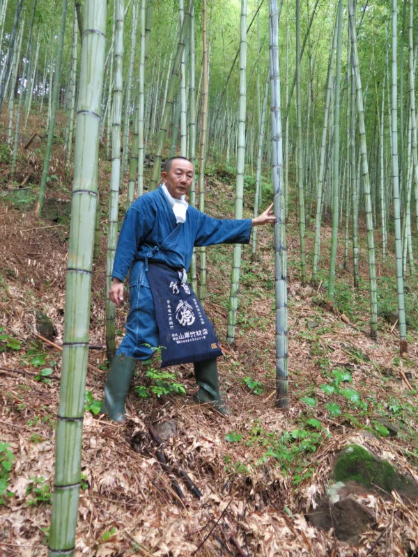 El bambú es un material esencial para la cultura japonesa. Muy abundante, ligero y fácil de trabajar, se ha empleado tradicionalmente para elaborar todo tipo de herramientas, tanto agrícolas como de caza o pesca. Además, su belleza intrínseca y su gran resistencia siguen llamando la atención de muchos diseñadores contemporáneos.