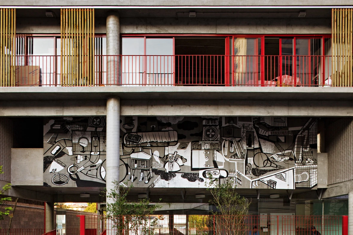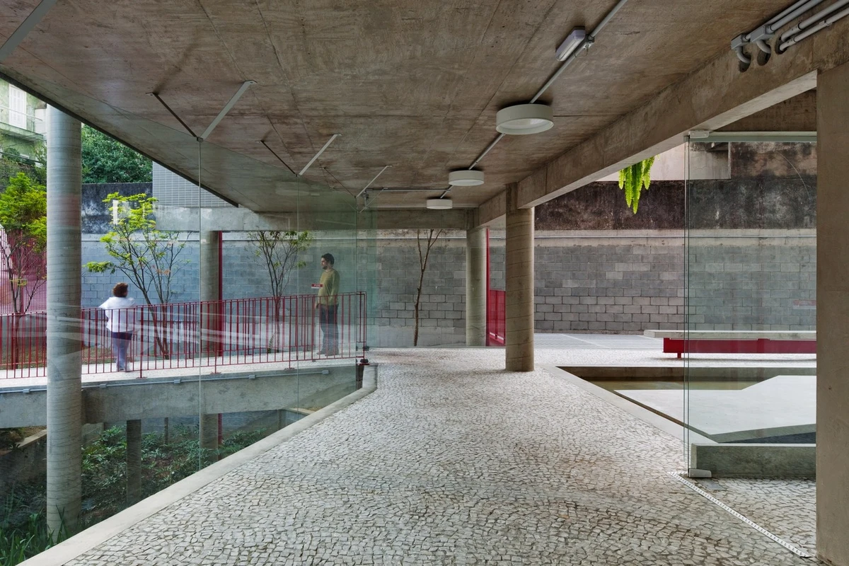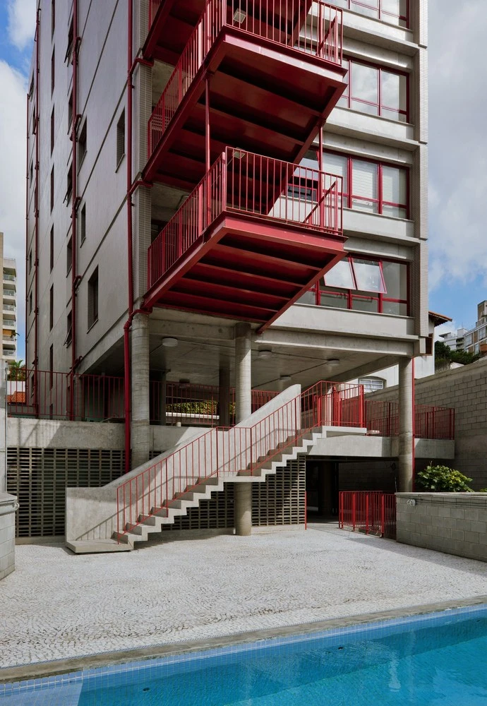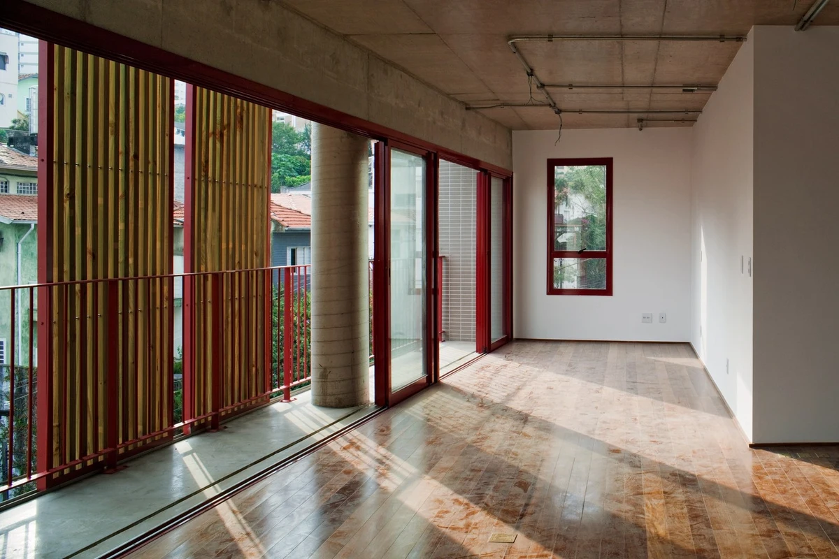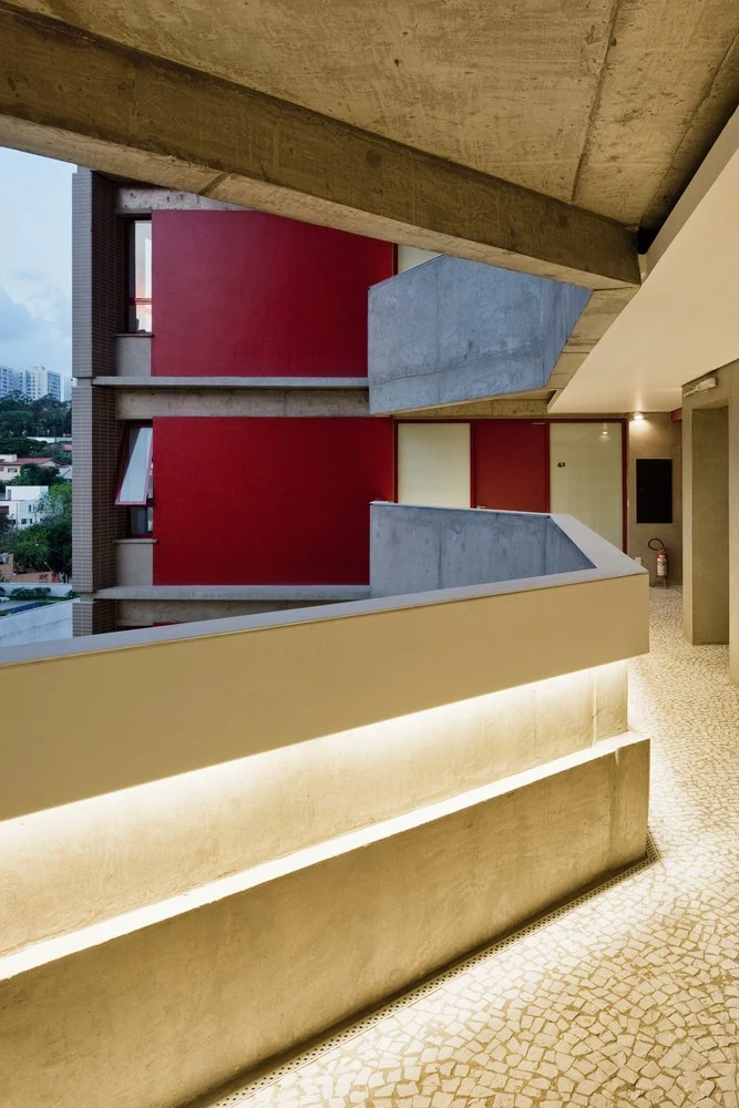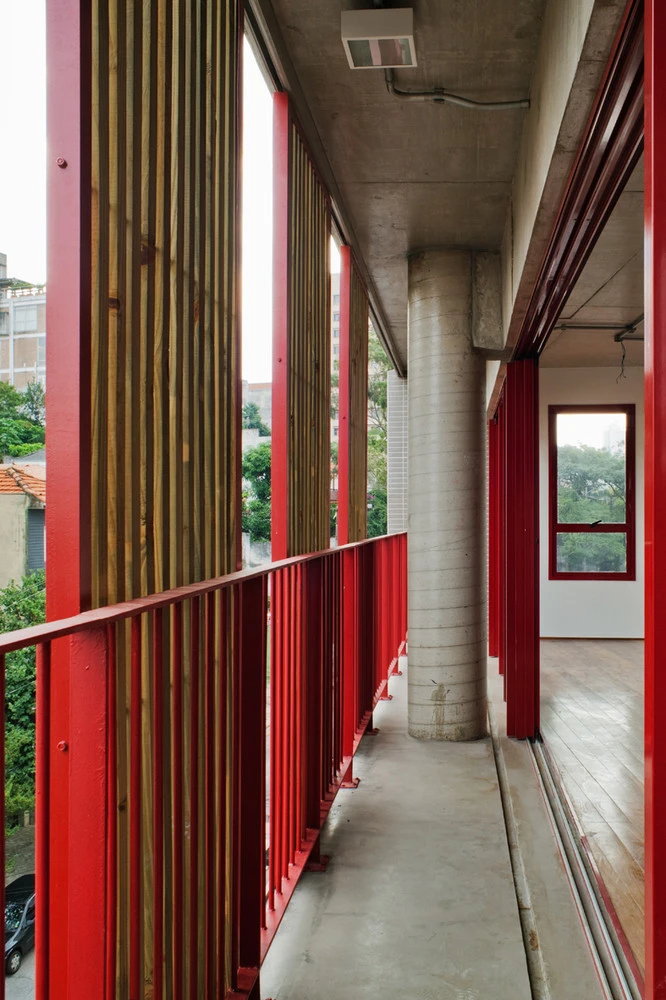 El edificio potencia la convivencia vecinal a través de una serie de balcones interiores en forma de U que conectan los bloques, replicando así en cada planta el espacio de encuentro del patio de acceso. Y esta invitación al acercamiento se prolonga a lo largo de la calle, donde, gracias a retranqueos en la fachada, brinda a la ciudad una pequeña plaza con un banco y un árbol. Una contribución adicional para devolver la escala humana a urbes como São Paulo.