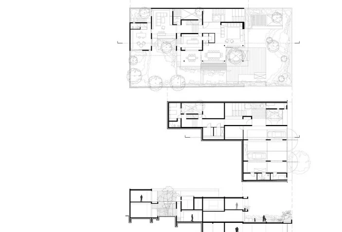 Sus clientes no deseaban una vivienda unifamiliar al uso rodeada de jardines, sino un jardín continuo de 1.000 metros cuadrados que integrara una vivienda. Por tanto, en el diseño abundan los espacios abiertos, que se van entrelazando para conformar las áreas más íntimas a través de distintas alturas, escalas y claroscuros.