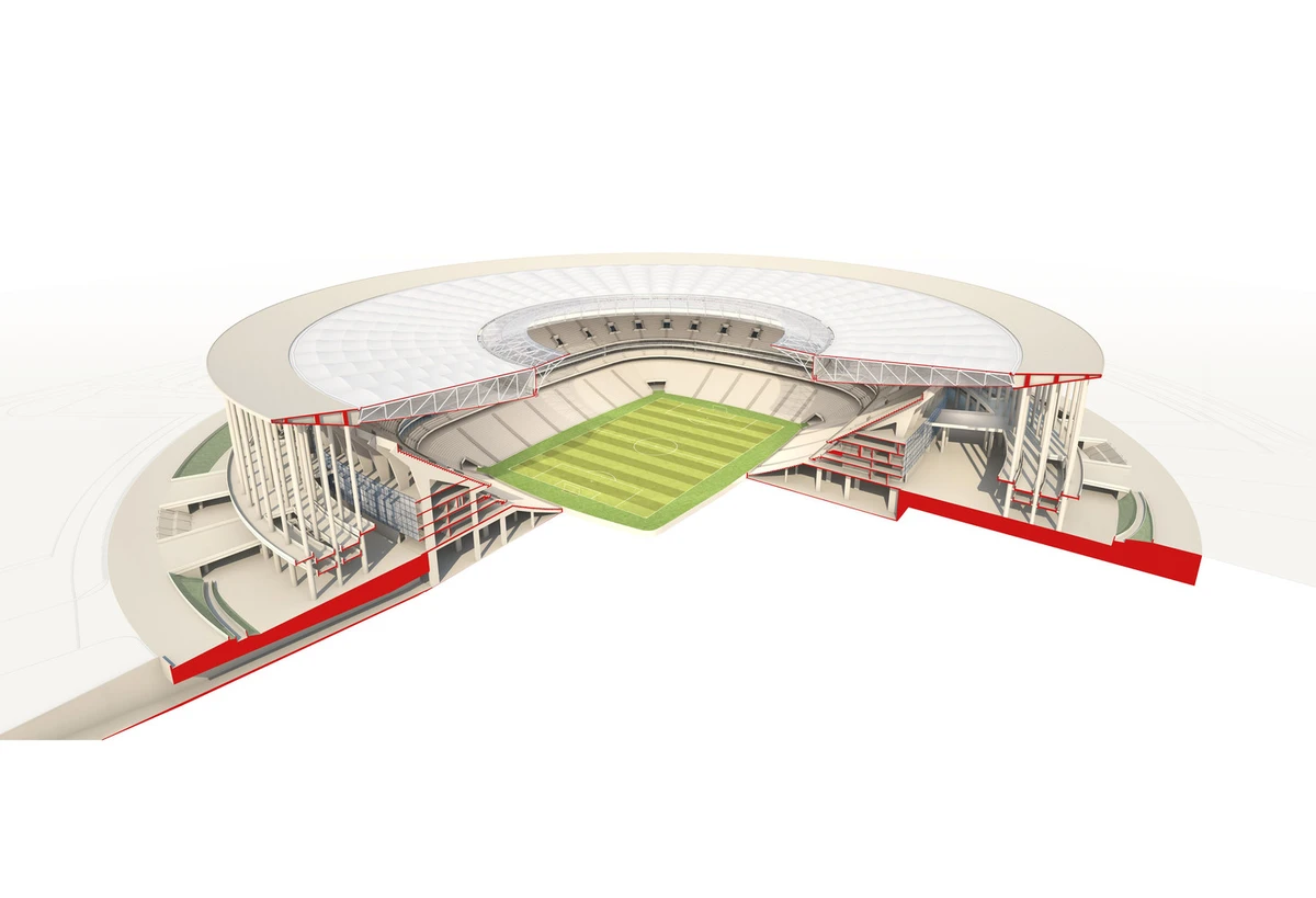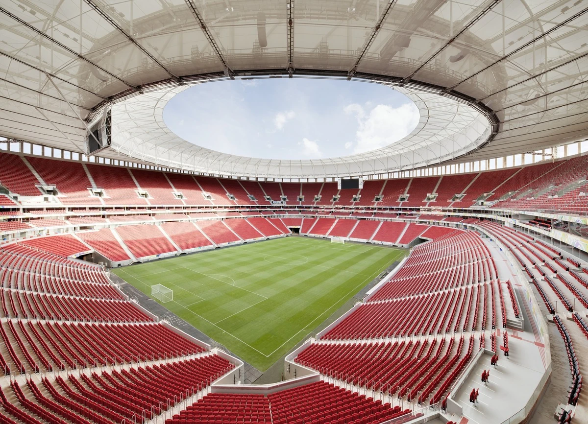 Y al igual que con los museos o los aeropuertos, hay estadios mejores que otros. Así lo ilustra el Estadio Nacional Mané Garrincha en Brasilia, que sustituye al antiguo estadio de ese mismo nombre, demolido en el 2010, y que ahora incorpora instalaciones de máximo nivel internacional, tales como las que exigía el Campeonato del Mundo de Fútbol de Brasil de 2014, para el que fuera originalmente concebido. Dedicado a una de las mayores glorias del fútbol brasileño, el estadio actual es obra de los arquitectos brasileños Castro Mello y de los alemanes gmp Architekten.
