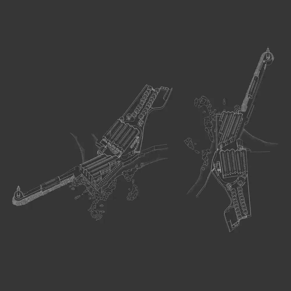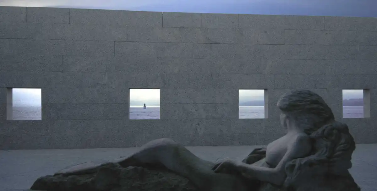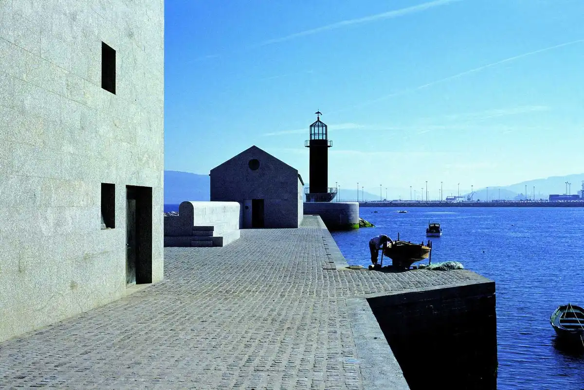 La solución planteada por Rossi y Portela juega con la variedad de espacios (jardines, edificios, patios, muelles, paseos…), que nos transportan desde tierra firme hasta el mar y viceversa. Esta fusión natural de entornos es una metáfora del transcurrir de la vida en la ría y más allá, con los muros de piedra acotando el espacio, pero con «islas» de comunicación que enlazan playas y ambientes a ambos lados de este cabo surgido de la mano del hombre.