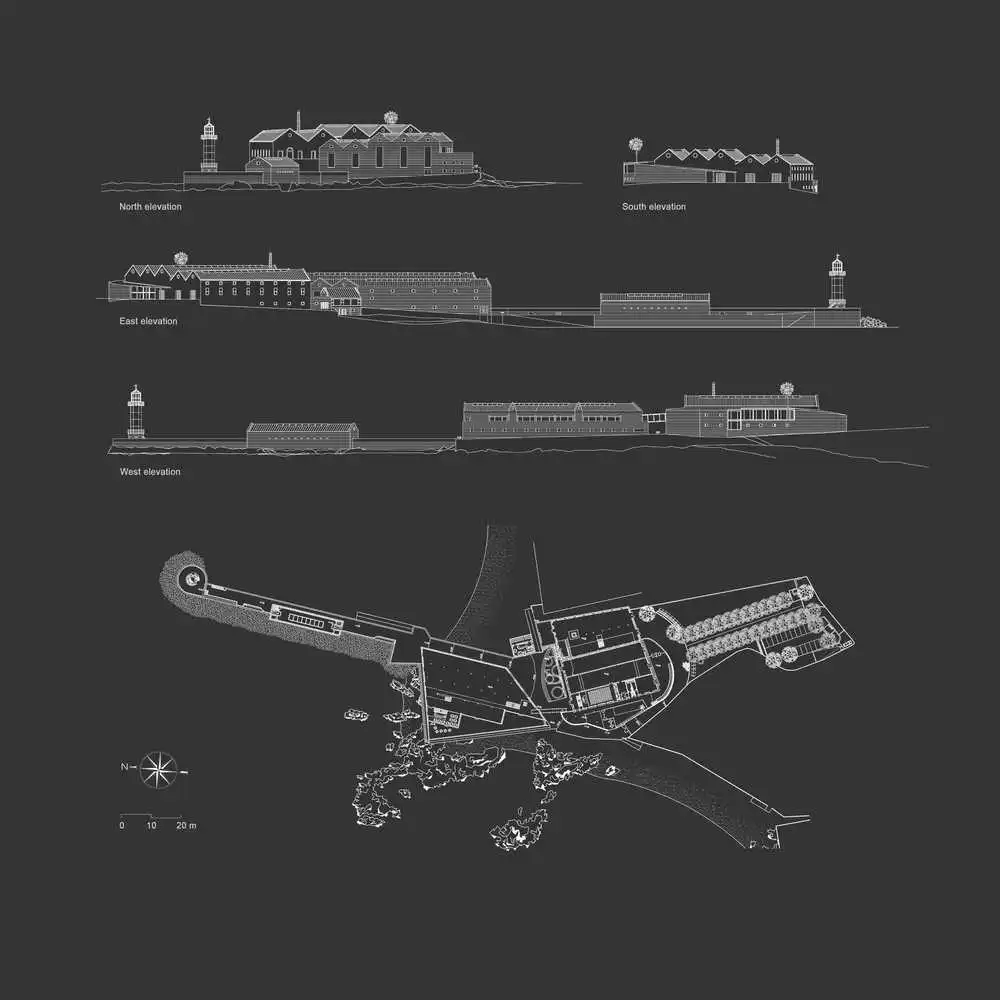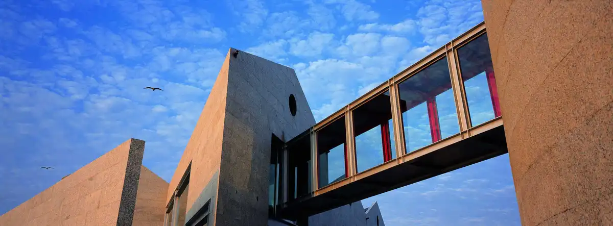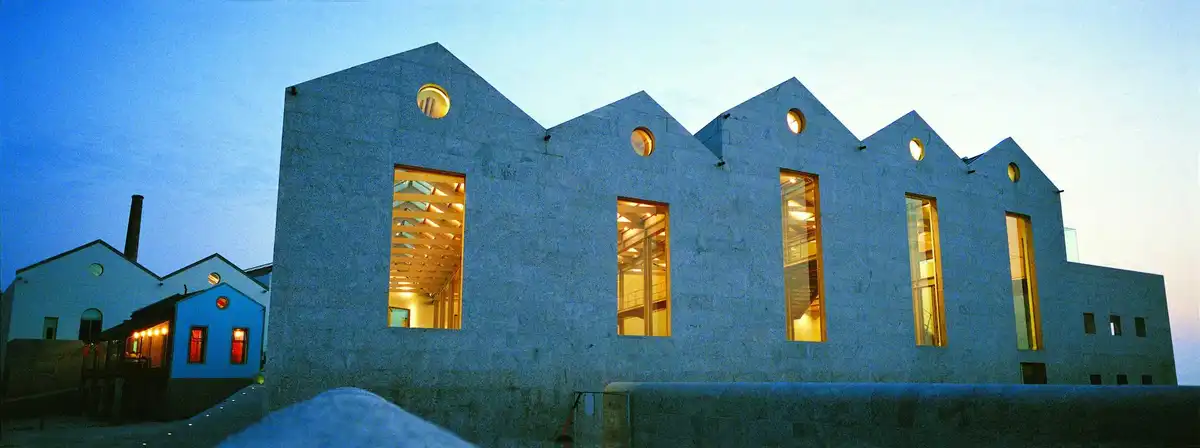 Destaca la extensa cantería de granito y la abundancia de miradores para contemplar el paisaje marítimo, que llega a su cénit en la pasarela acristalada que conecta las dos familias de naves. En palabras del arquitecto gallego, «los huecos practicados en sus muros de piedra son como ojos dotados de geometría aristada que captan escenas marinas allí donde estas se producen, las enmarcan, se apropian de ellas, se las acercan y se las muestran a los visitantes, como si de una colección de estampas se tratara».