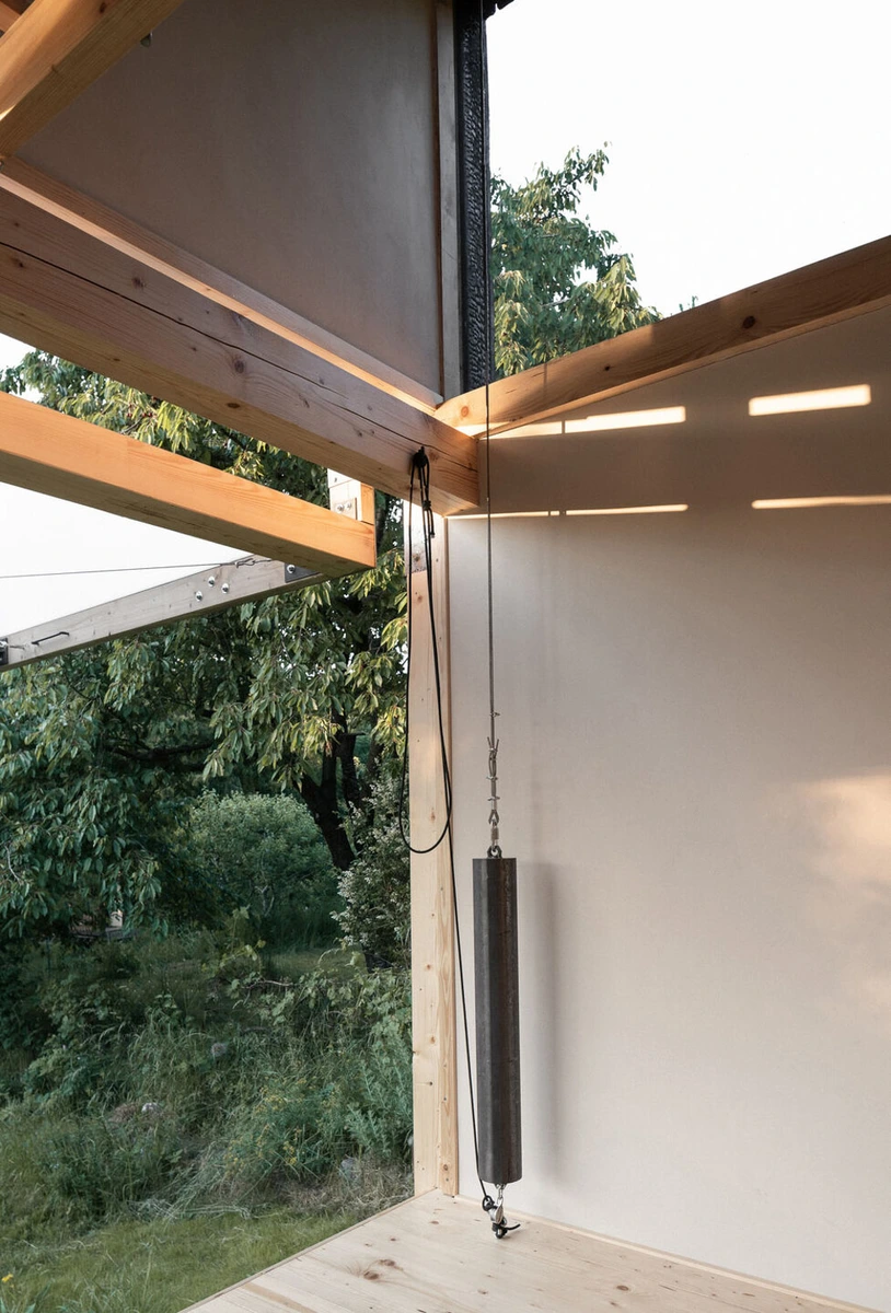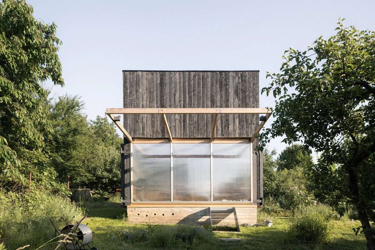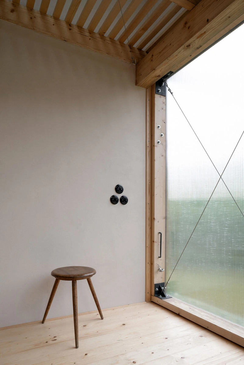 Lejos de las aspiraciones residenciales de gran escala, el pabellón responde a un uso híbrido y estacional: un lugar de resguardo en días de mal tiempo, un espacio habitable para las noches estivales, y un invernadero improvisado durante los meses más fríos. Y lo hace con una intervención de bajo impacto, tanto formal como técnico.
