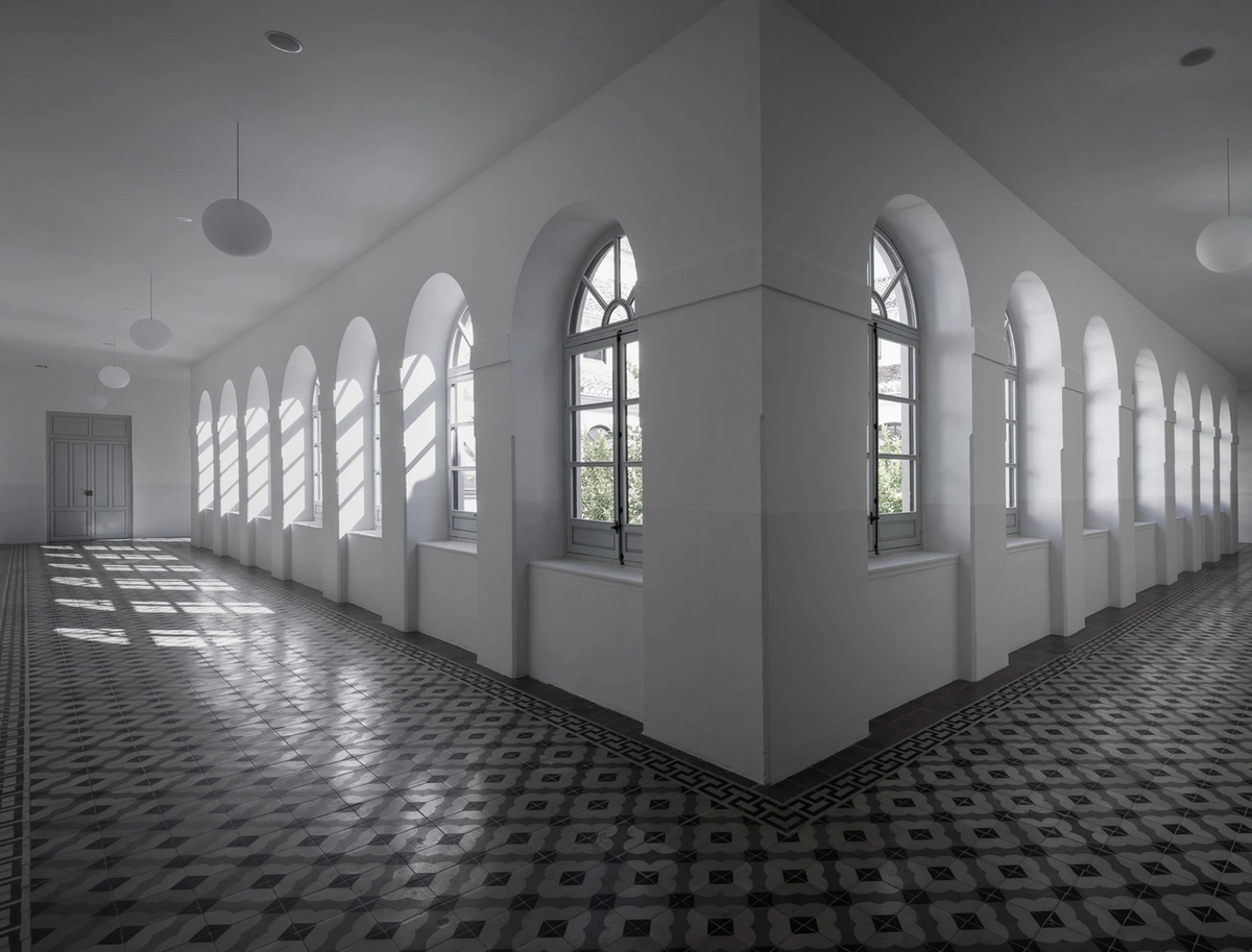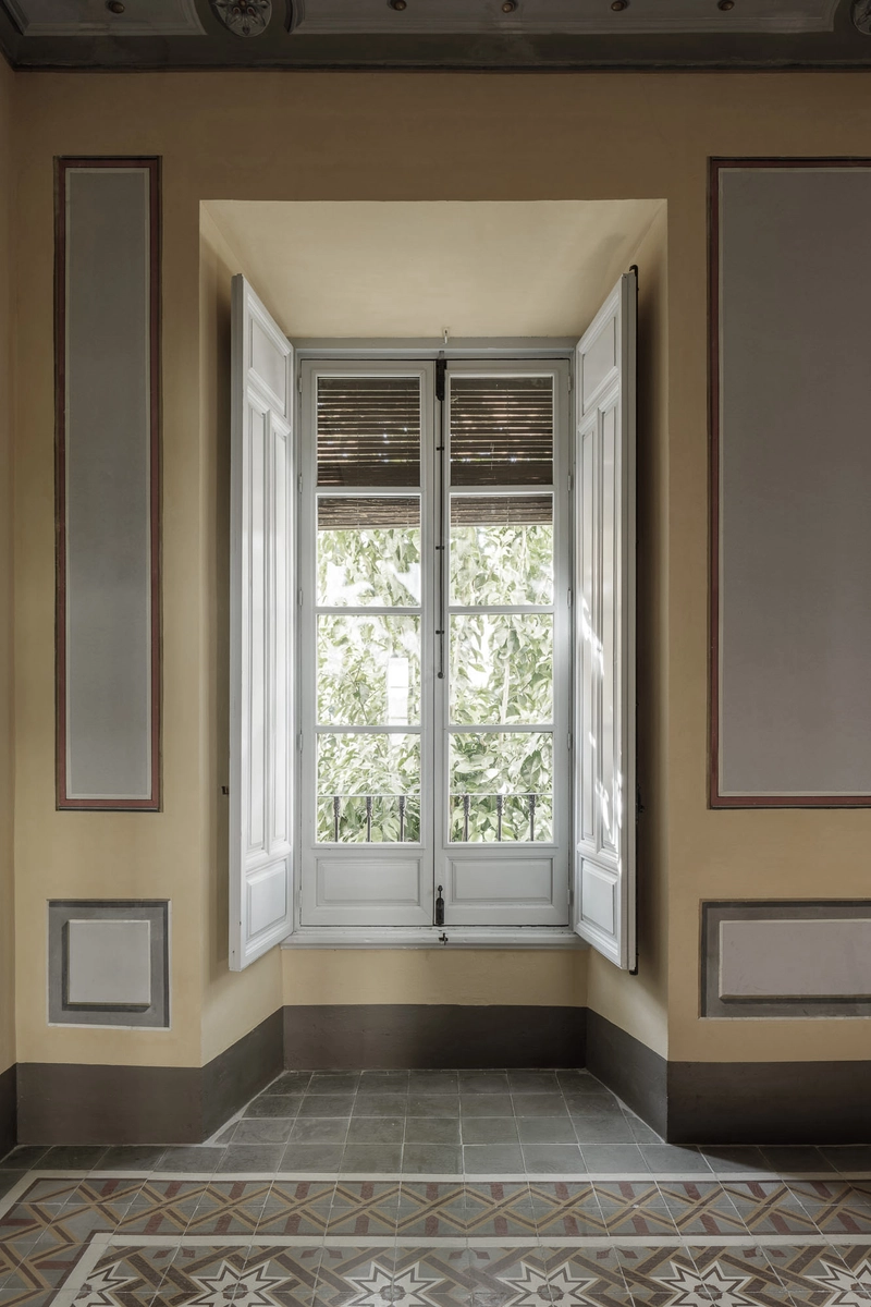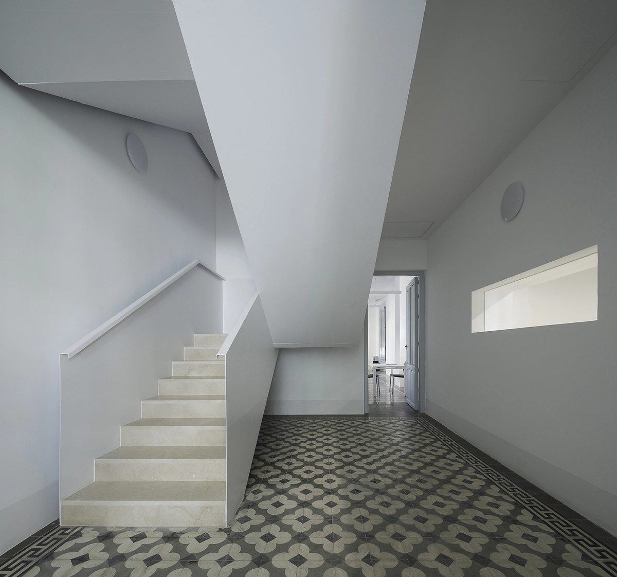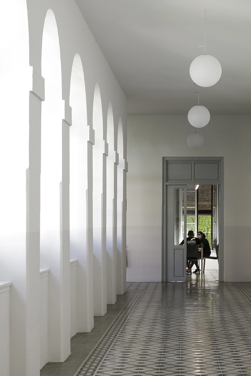 Dado el gran valor patrimonial del conjunto, el estudio de Elisa Valero se centró en respetar la geometría original, reasignando espacios y poniendo de relieve las arquerías interiores y los ricos pavimentos de baldosa hidráulica, muy bien conservados. Se incorporó también un núcleo de baños en cada planta, un ascensor y una nueva escalera exenta.