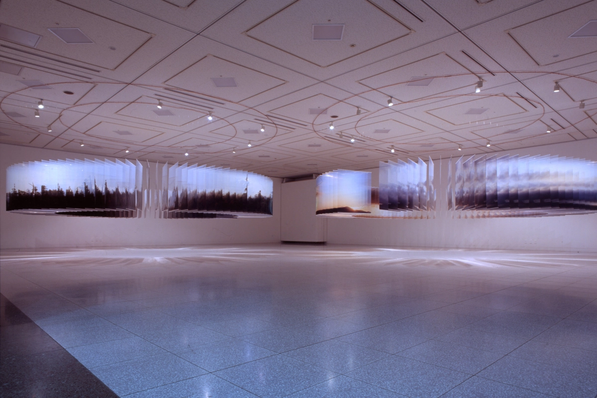 Nakanishi fotografía estos eventos a intervalos regulares, imprime el resultado en láminas de film acrílico transparente de gran formato y realiza un montaje secuencial en tres dimensiones. De esta forma, podemos ver físicamente ese tiempo que nos falta en una foto convencional. Son como esculturas cambiantes del paisaje que retratan la fugacidad de cada momento.