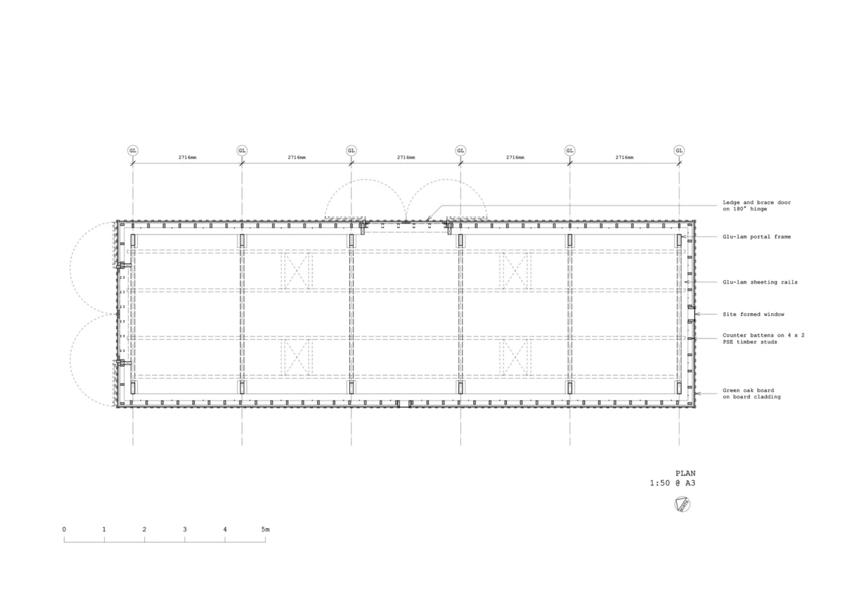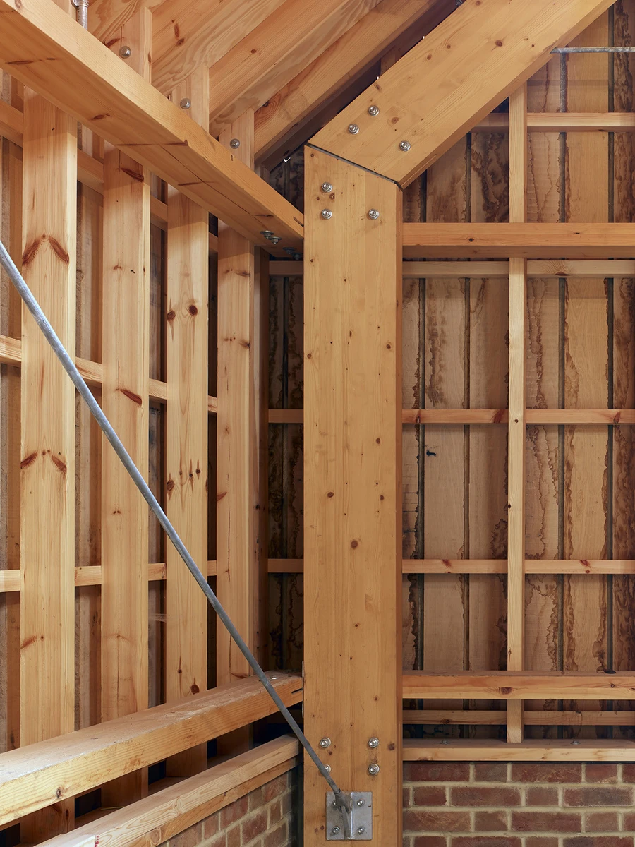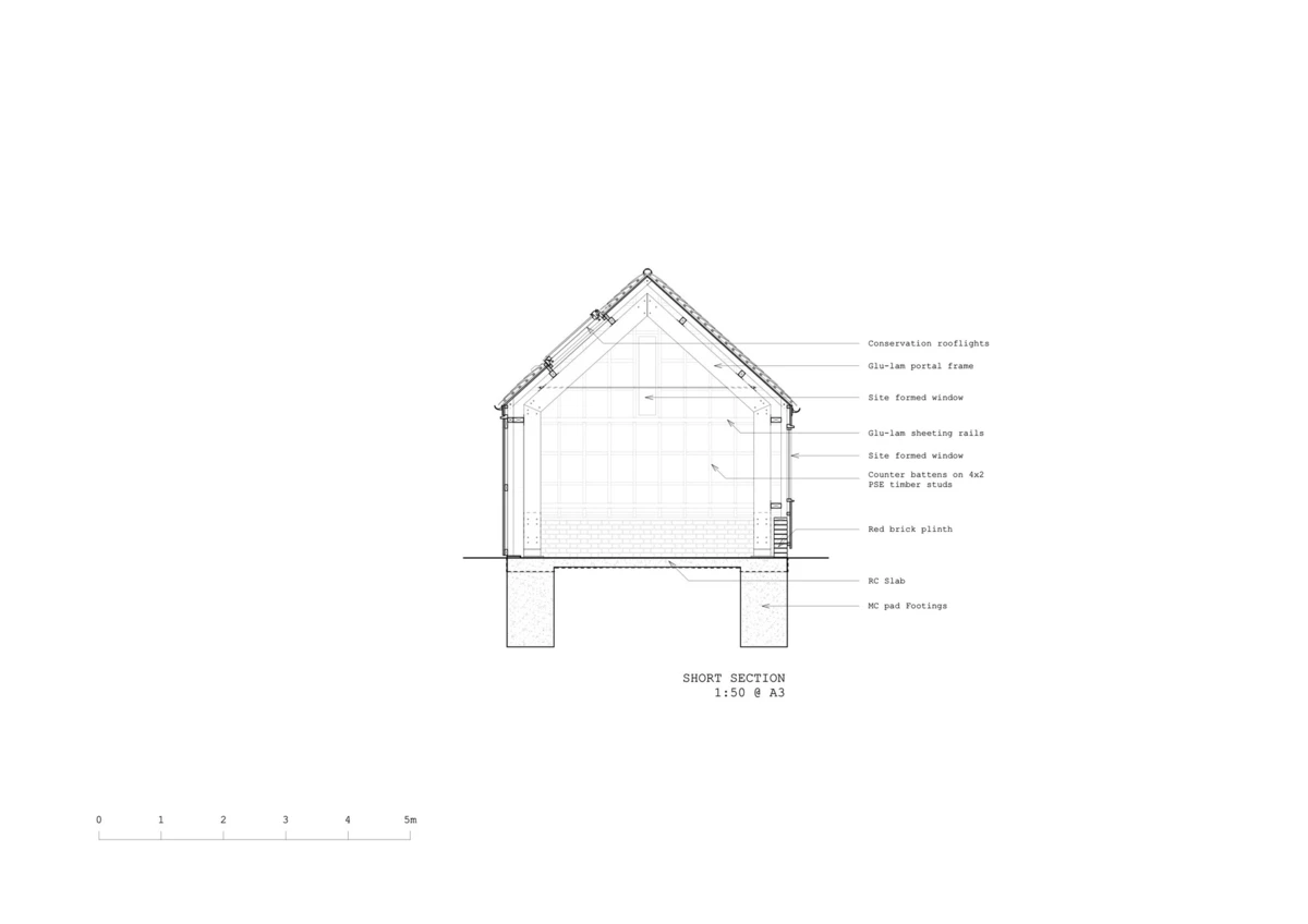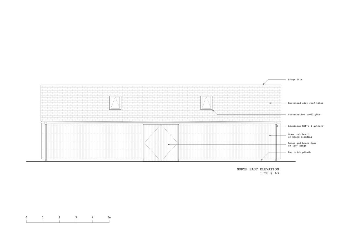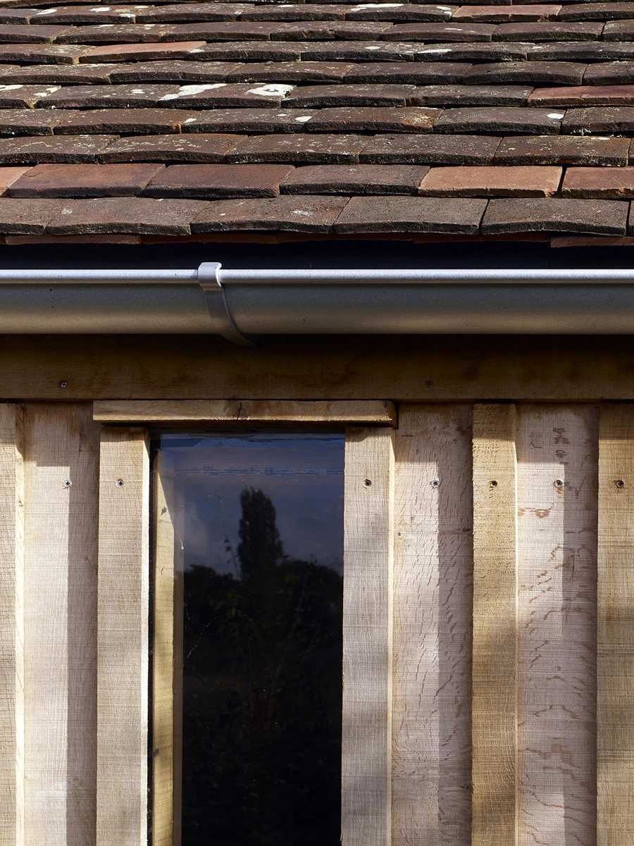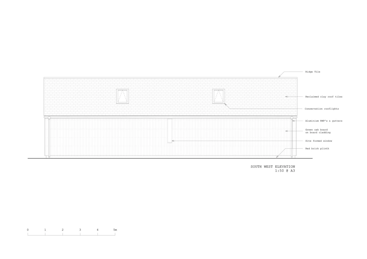 El Long Sutton Studio reemplaza el antiguo garaje edificado en hormigón y el cobertizo, los dos en bastante mal estado de conservación. En su construcción se utilizaron abundantes materiales tradicionales: largos tablones de roble asentados sobre zócalos de ladrillos rojos a juego con los de la vivienda principal. Así mismo, el tejado fue revestido con tejas recuperadas.