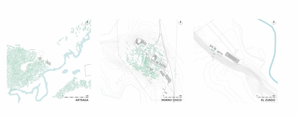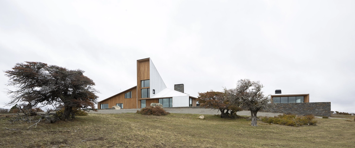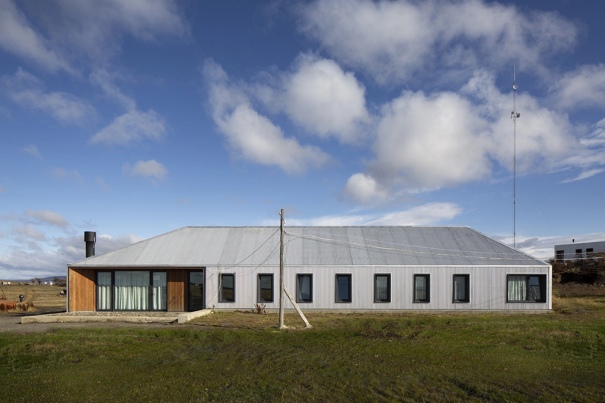 La dureza del clima de la Patagonia ha obligado a sus habitantes a agrupar siempre casas e instalaciones de trabajo siguiendo un modelo de aldea compacta. RDR Architectes también adoptó ese ordenamiento, así como la construcción prefabricada típica de madera y metal revestida de chapa de acero ondulada. Un sistema muy similar al utilizado por los pioneros, dada la escasez de recursos locales y los problemas de logística que suponen los asentamientos en zonas tan aisladas.