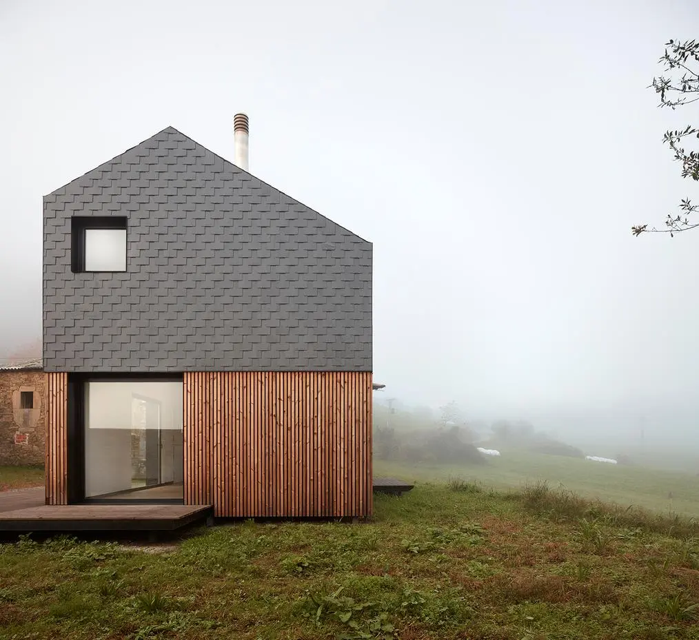 El estudio madrileño de Sergio Baragaño firma la Casa Montaña, una vivienda unifamiliar especial. Diseñada para un paisajista inglés y su familia, enamorados de la naturaleza asturiana, se fabricó a lo largo de cuatro meses en Madrid y viajó 600 km hasta su ubicación definitiva en el concejo de Valdés. Allí, tras un proceso de ensamblaje de tan solo 5 horas, un artesano local realizó la cubierta de pizarra para rematar la construcción.