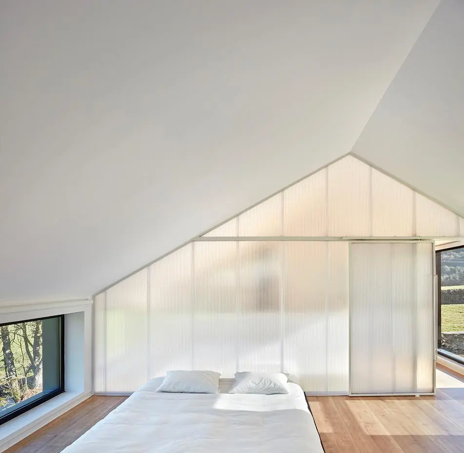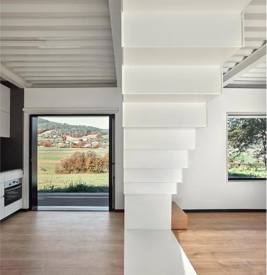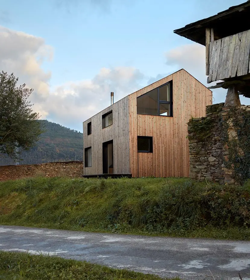 Con una superficie de 100 m2 y un presupuesto de 120.000 euros, la casa fusiona tecnología y tradición. Era importante preservar el entorno rural y el conjunto formado por una vivienda tradicional en rehabilitación y un hórreo, por lo que se decidió apostar por este concepto modular, más propio de la industria aeronáutica o del automóvil.