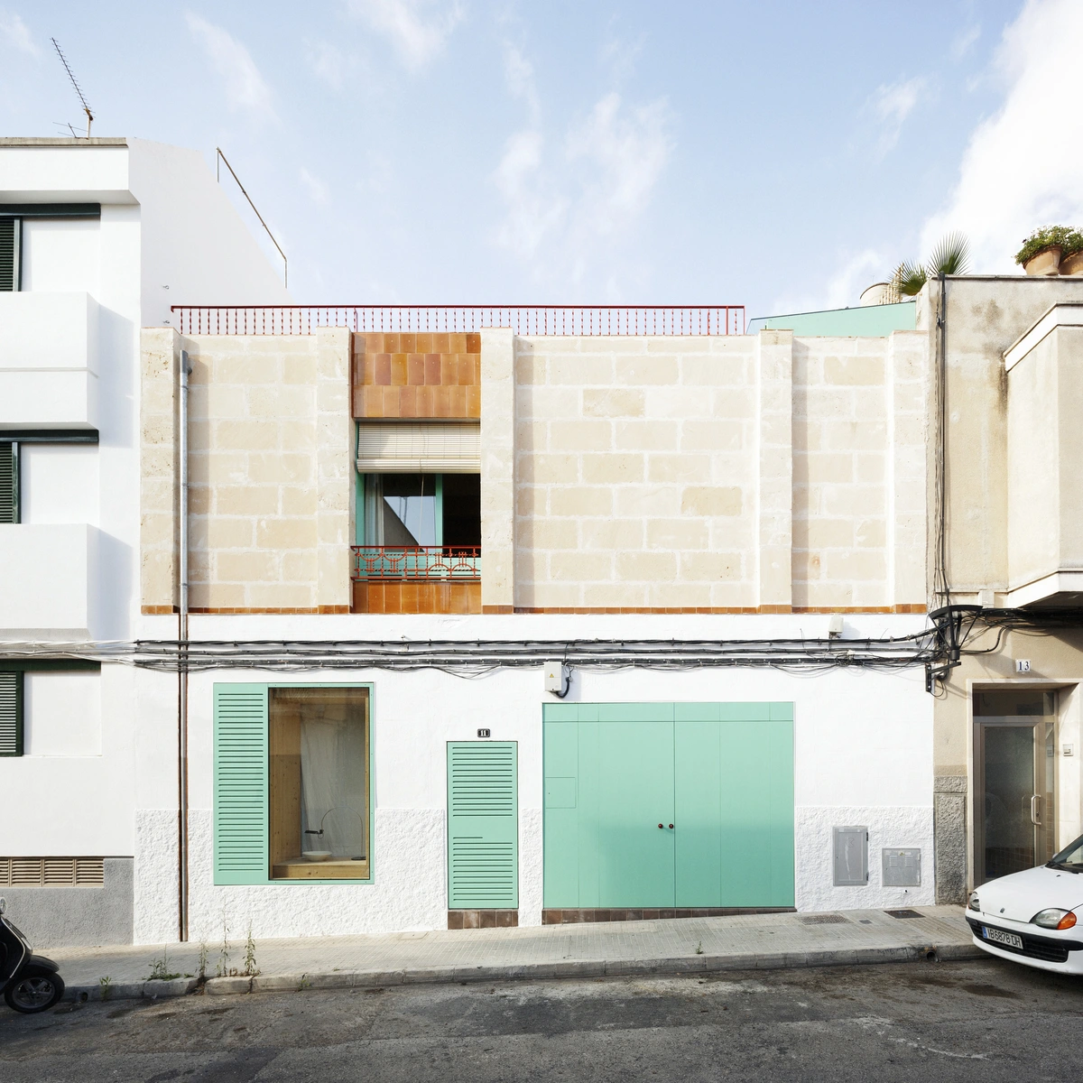 Los fundadores del estudio, Aina Salvà y Alberto Sánchez, querían incorporar además productos de los artesanos locales. Para los pavimentos interiores eligieron baldosas hidráulicas de la firma mallorquina Huguet, mientras que la fachada y la piscina lucen baldosas especiales de terracota obra de Miquel Soler, un fabricante tradicional de Felanitx.