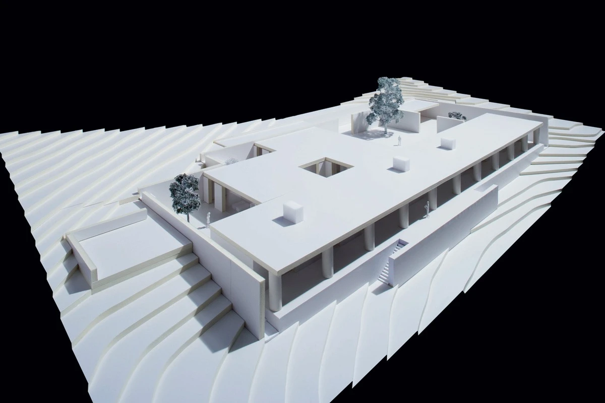Tras esta vuelta a la normalidad, había que contar con la pronunciada pendiente del sitio destinado a la residencia. Para no desvirtuar el efecto conseguido, se optó por una casa de una sola planta situada en la cúspide de la ladera.