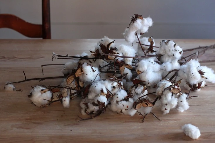 Esa combinación de colores castaños, rojizos y amarillentos, tan propia del final del otoño, va a destacar el blanco del algodón, como ocurre en esta época con las primeras nevadas sobre los bosques.