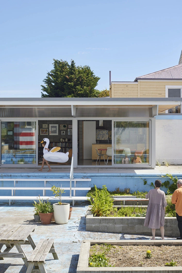 Construida originalmente en 1912, con vestuarios y un kiosco añadidos en los años 70, la piscina fue durante décadas un punto de encuentro para la comunidad. Hoy ese lugar vuelve a estar habitado. Los nuevos propietarios encargaron una casa cálida de tres dormitorios, con espacio suficiente para libros, arte y memoria. Y eso es precisamente lo que ofrece esta intervención galardonada con el NZIA Western Branch Local Award y el NZIA National Housing Award en 2024.