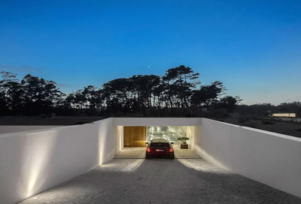 El estudio luso Contaminar Arquitectos ha diseñado esta vivienda unifamiliar en Leiria para minimizar el impacto visual con el entorno, a pesar de su gran espacio interior.