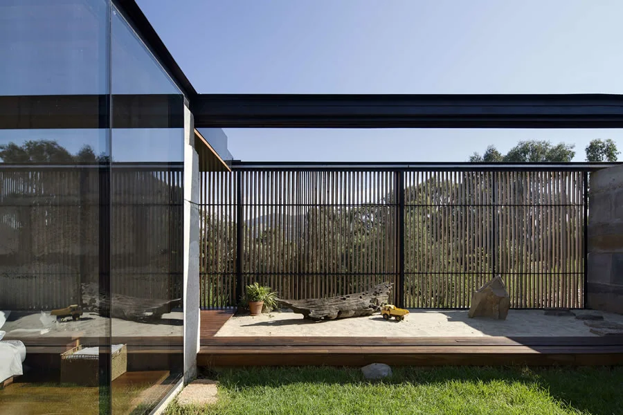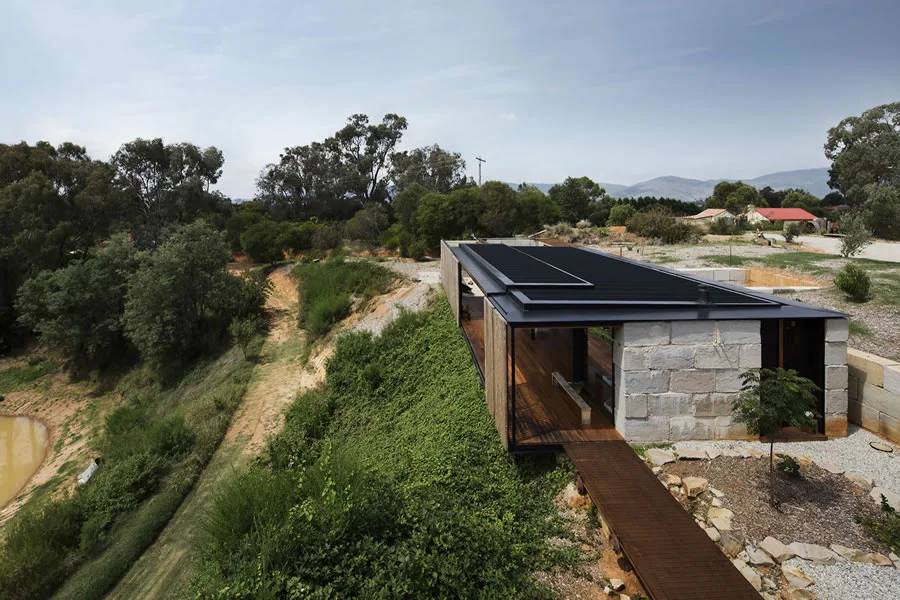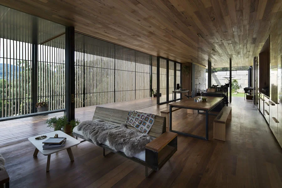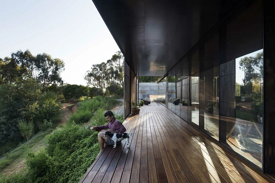 En este creativo unifamiliar australiano los límites se difuminan y los espacios cambian a lo largo del día. Un verdadero hogar de madera, vidrio y hormigón adaptado a su entorno que explora el potencial de materiales desechados y con unas vistas a la naturaleza realmente espectaculares.