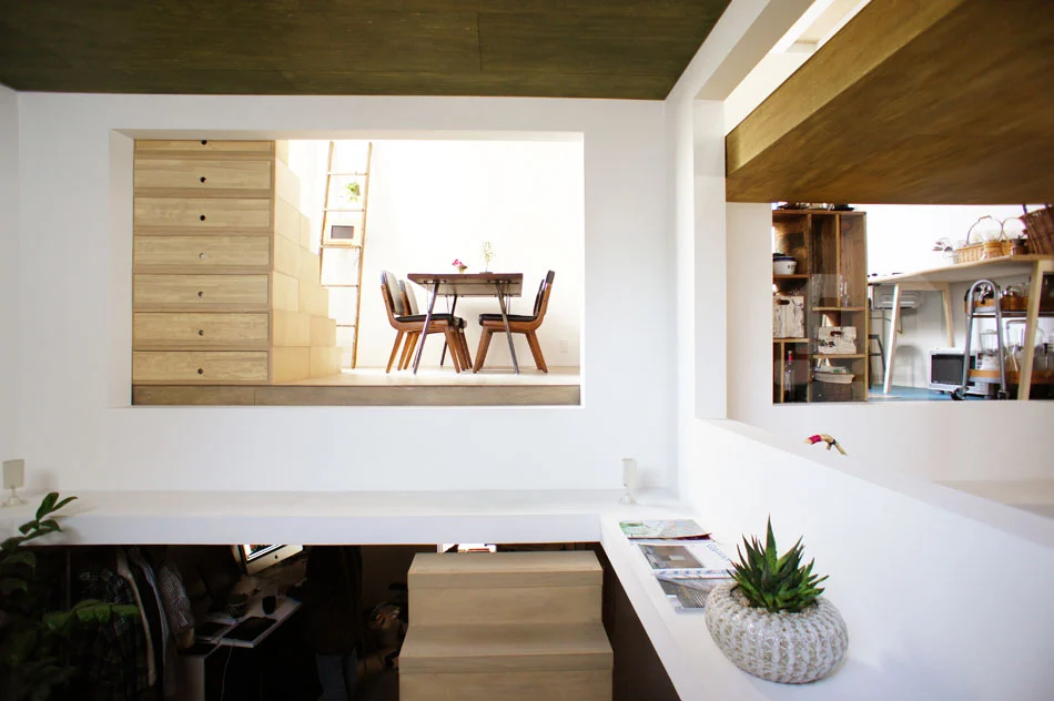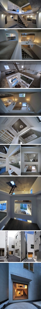 Proyecto de vivienda y estudio de Hiroyuki Shinozaki Architects para una pareja en el centro de Tokyo. El proyecto House T está concebido como una vivienda que se multiplica como una librería. La construcción aprovecha al máximo el eje vertical, con pavimentos lisos que actúan como contenedores y la vida organizada alrededor de vacíos. Las zonas de actividad están conectadas a través de una mezcla de vistas y aperturas, creando un tipo de plano abierto, dinámico y libre. Cada nivel, es un piso que vuela sobre el que la luz cuelga para animar -teatralmente- la rutina diaria. Lo cotidiano está impecablemente empaquetado en una red abierta de cajas.