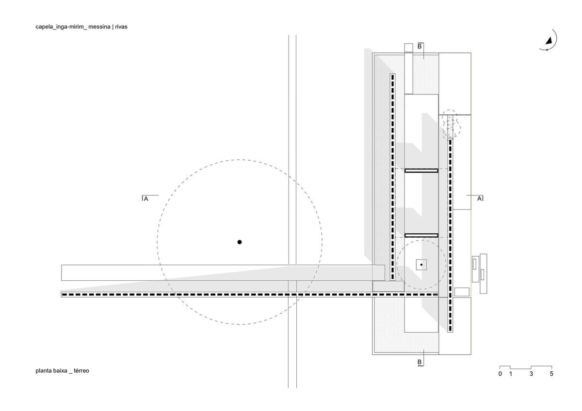 No hay, pues, zonas estancas, ni tan siquiera en el techo. Por ello, la capilla Ingá-mirim se adapta a los distintos actos religiosos, ofreciendo a la comunidad espacios de dimensiones y cualidades variadas, ideales para el recogimiento y la oración, pero también para la celebración festiva en plena naturaleza.