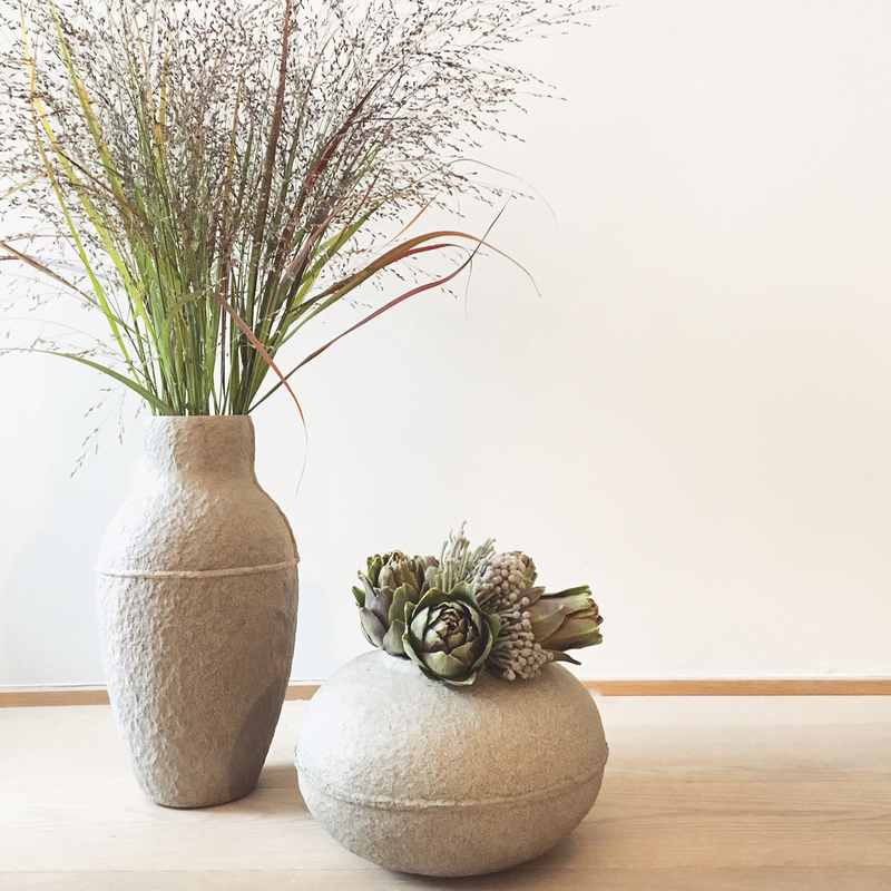 Por último, vamos a hablaros de los jarrones Paperpulp, probablemente los que más llaman la atención debido al material del que están hechos. Estos jarrones están realizados en papel maché, esto no se convierte en un problema a la hora de darles uso, ya que se pueden rellenar de agua sin que sufra ni lo más mínimo, una característica curiosa de estos jarrones.