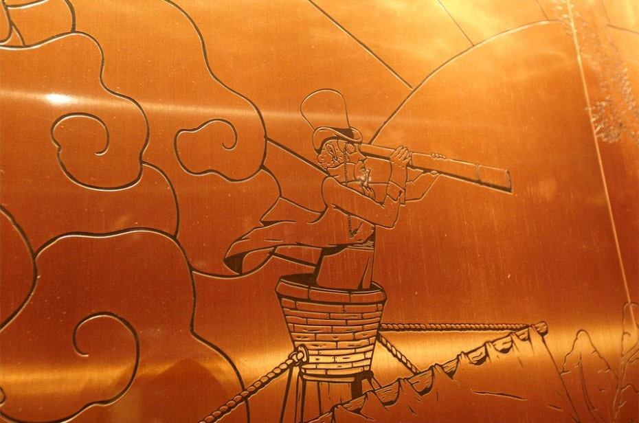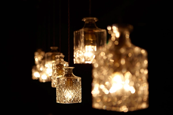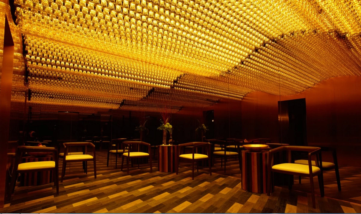 Para ello, Love ha creado ambientes intimistas utilizando iluminación tenue y diversos tonos ocres que recuerdan en todo momento el color del licor. Esta inmersión en el mundo del whisky escocés se intensifica mediante paredes rellenas de cebada y turba, muros en madera de roble con tipografía, lámparas de cristal en forma de licoreras o alambiques de cobre con la estructura modificada ostensiblemente en un guiño a la arquitectura china. La fusión entre ambos mundos también se ve potenciada con la inclusión de muebles y complementos con motivos orientales y victorianos. En definitiva, todo está lleno de símbolos, como los techos recubiertos de copas invertidas que tiñen de color dorado ciertas estancias.