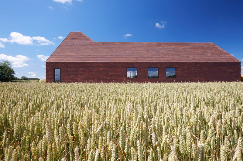 El Kornets Hus (literalmente, la casa de los cereales) ha sido diseñado por el estudio noruego Reiulf Ramstad Arkitekter combinando elementos de la arquitectura local con una distribución contemporánea del espacio. Ubicado en los terrenos de una granja y una panadería ya existentes, el edificio muestra orgulloso su imponente fachada en forma de L revestida por completo de ladrillo rojo.