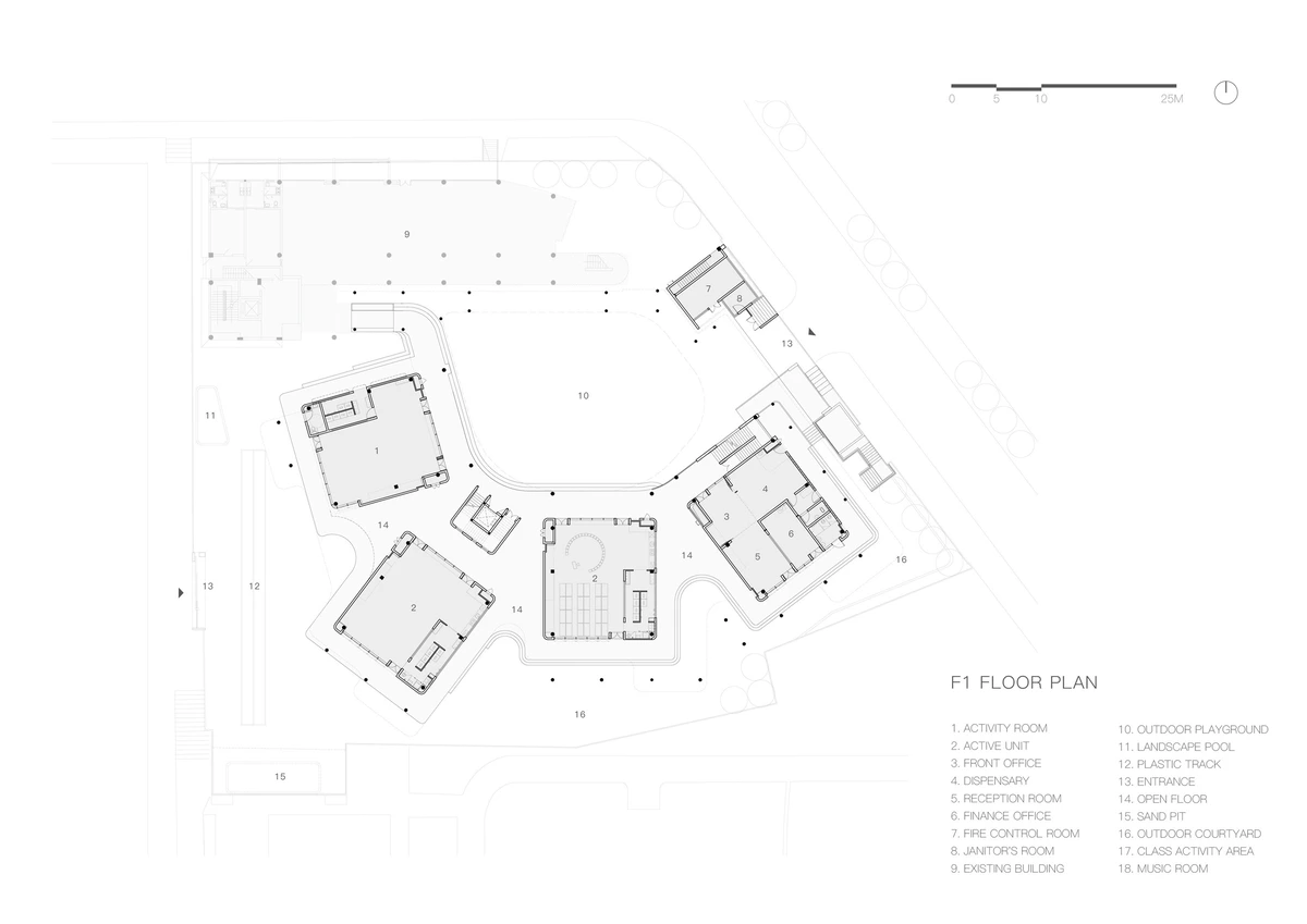 Yunchao Xu, fundador del estudio, explica que la intención en el diseño fue recrear una pequeña ciudad rodeada de «bosque», un espacio que cubriera las necesidades de curiosidad y experimentación de los niños. Un espacio que fuera más allá de las aulas.