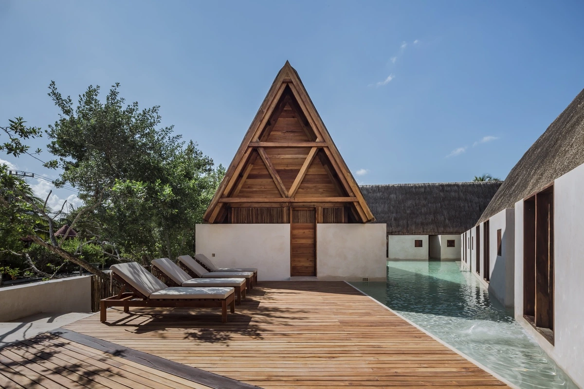Magui Peredo y Salvador Macías, los arquitectos responsables del proyecto, consideran muy importante emplear técnicas artesanales en los diseños contemporáneos. Esa puesta al día o reinterpretación de saberes ancestrales, como la construcción de palapas o el empleo del chukum a modo de punto de unión entre la arena y el manglar, produce una arquitectura refinada y eficaz. Pequeños paraísos que no restan nada de encanto a su entorno natural.