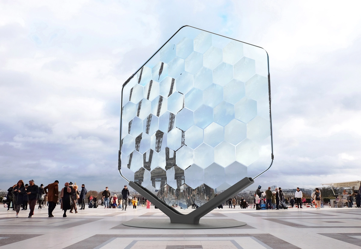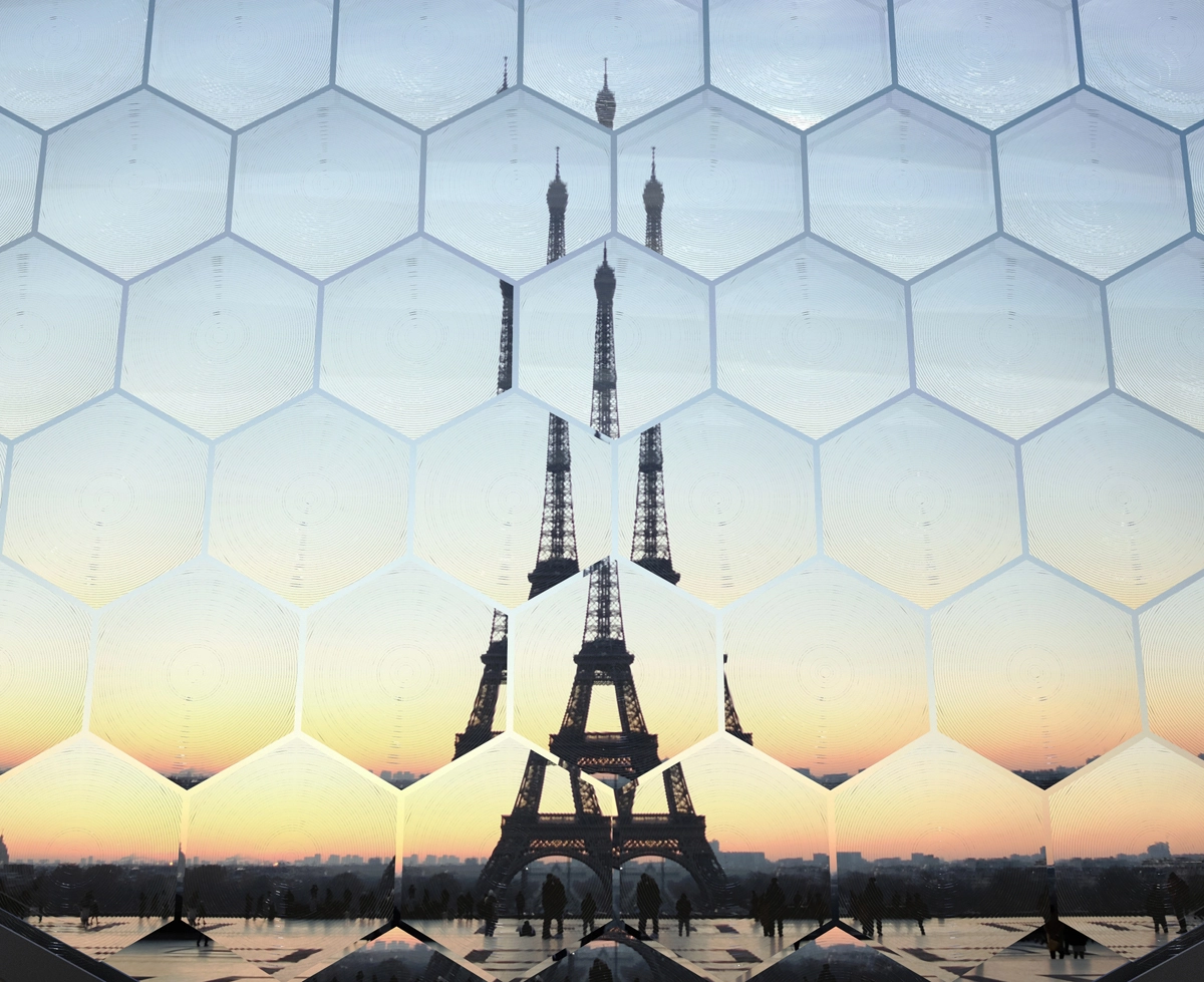 En realidad, ha imaginado tres lupas gigantes de forma hexagonal que irían rotando lentamente. Al estar ubicadas en la explanada del Trocadéro –que ofrece una de las mejores vistas de la torre– lograrían atraparla por completo, haciendo que desapareciera y volviera a emerger en una versión múltiple y cambiante.