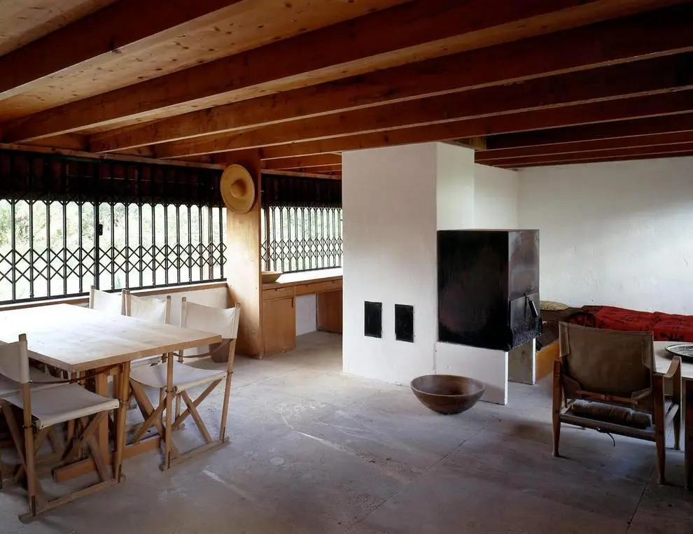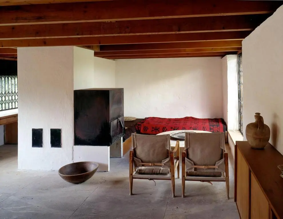 El diseño de Rainer, bastante sencillo, procura calor de hogar a partir de muy pocos elementos. De hecho, redujo al mínimo el uso de la tecnología convencional, aprovechando el agua del pozo local y sustituyendo la iluminación eléctrica por velas, a fin de integrarse completamente en la naturaleza.