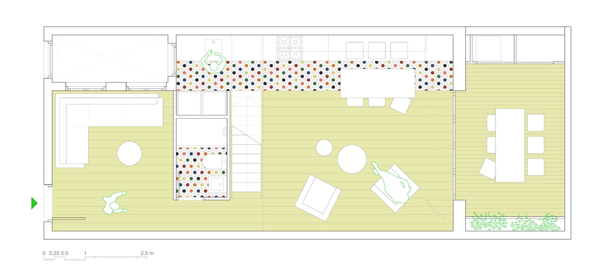 Barrio de Poblenou. Una joven pareja hispano-sueca a punto de ampliar la familia decide encargar al estudio barcelonés Nook Architects la renovación de su vivienda recién comprada. Van a ser unas pocas mejoras: darle un aire nuevo a la cocina, abrirla a la sala de estar, añadir un baño y rejuvenecer la decoración. Sin embargo, al realizar los primeros trabajos se descubre que los materiales de construcción de esta casa entre medianeras dejan bastante que desear. De hecho, el forjado de la planta principal casi se vino abajo.