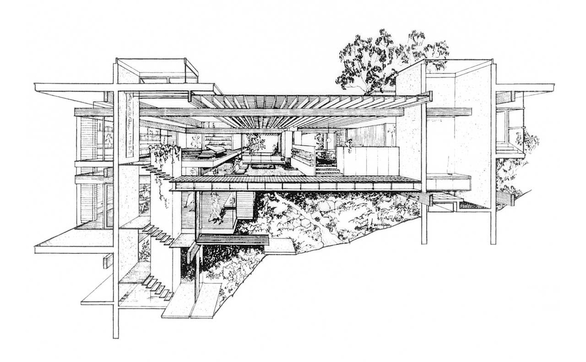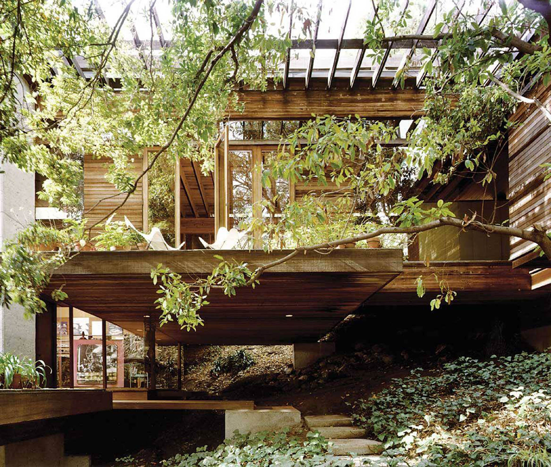 Suspendida sobre la ladera, entre hormigón, vidrio y secuoya, la casa sigue recordando que la arquitectura doméstica puede ser al mismo tiempo experimento estructural y lugar para vivir.