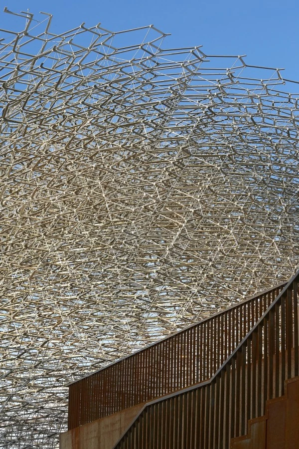 «The Hive» (La Colmena) es un proyecto del arquitecto Wolfgang Buttress en colaboración con el estudio de ingeniería Tristan Simmonds y el estudio de arquitectura BDP, la construcción y montaje de las piezas corre a cargo de Stage One.