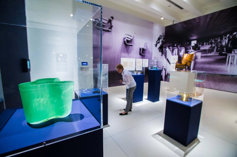 La muestra repasa sus cincuenta años de trabajo, en los que planificó cerca de quinientos edificios y proyectos, la mayoría en Finlandia, aunque también en otros dieciocho países. Edificios singulares como el Sanatorio de Paimio para tuberculosos, la Villa Mairea en Finlandia, la Biblioteca de Viipuri en Rusia, u otros a gran escala, como el Auditorio de Helsinki o la Ópera de Hessen, son ejemplos de su concepción artística integral, que le llevaba a diseñar además el mobiliario, las lámparas, los tejidos e incluso los propios materiales de construcción de cada espacio.