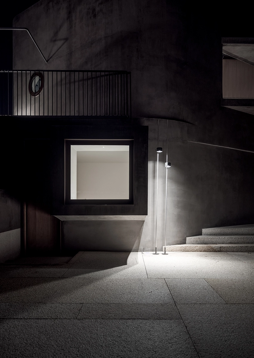 Ya en el exterior, el modelo cilíndrico Lenta crea una atmósfera acogedora, perfecta para veladas en la enorme terraza. Y para alumbrar los tramos de escaleras, nada mejor que una lámpara ajustable en altura como Bubka, estilizada y sumamente eficaz.