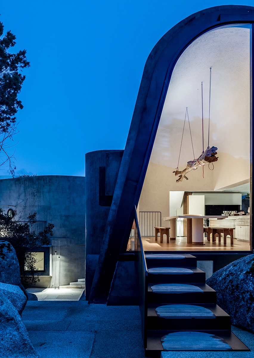 Cerca de Porto Cervo, en el norte de Cerdeña, Villa «La Grintosa» se ancla con firmeza a las rocas. La fantasía arquitectónica de la italiana Stefania Stera añade así otra pizca de locura a este exclusivo rincón de la Costa Esmeralda.
