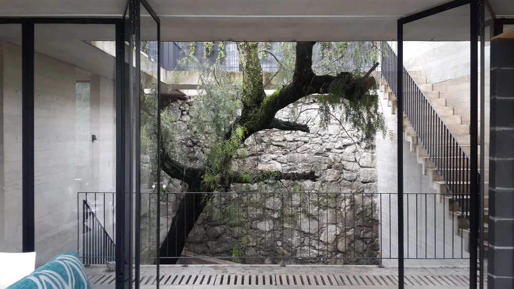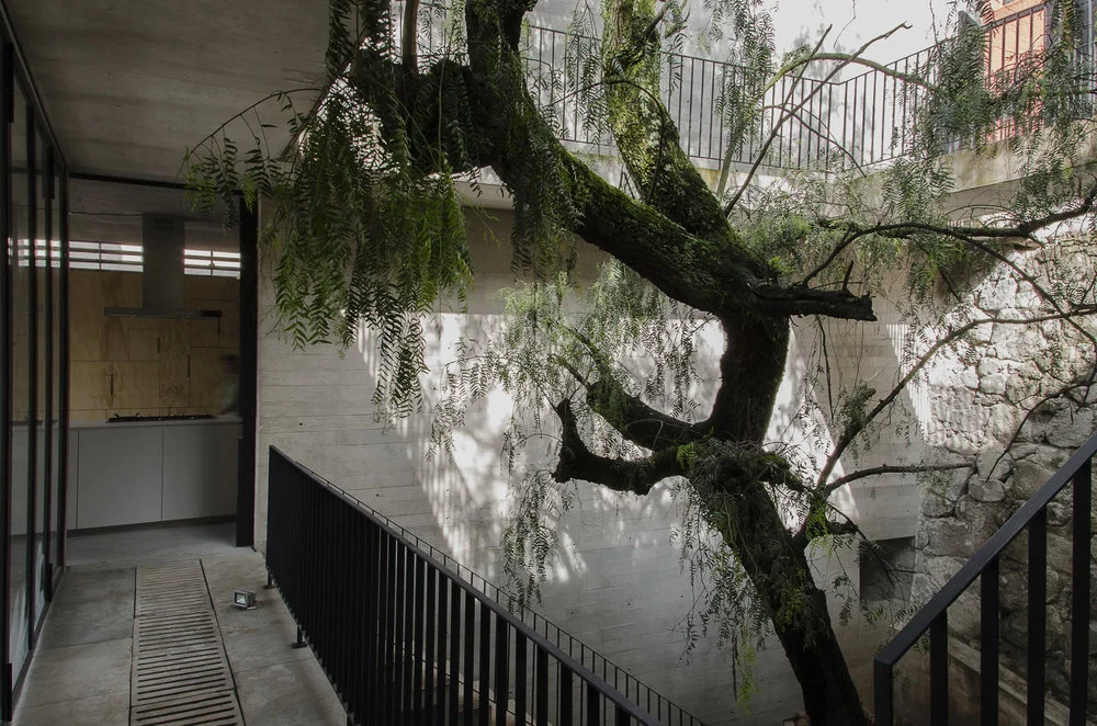 El vínculo con la naturaleza queda patente en todos los rincones de la Casa BC, desde los helechos del jardín hasta las macetas que rodean las habitaciones y, por supuesto, en torno al gran árbol que preside el patio y que parece vertebrar toda la vivienda.