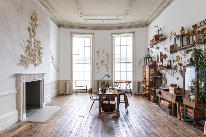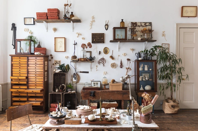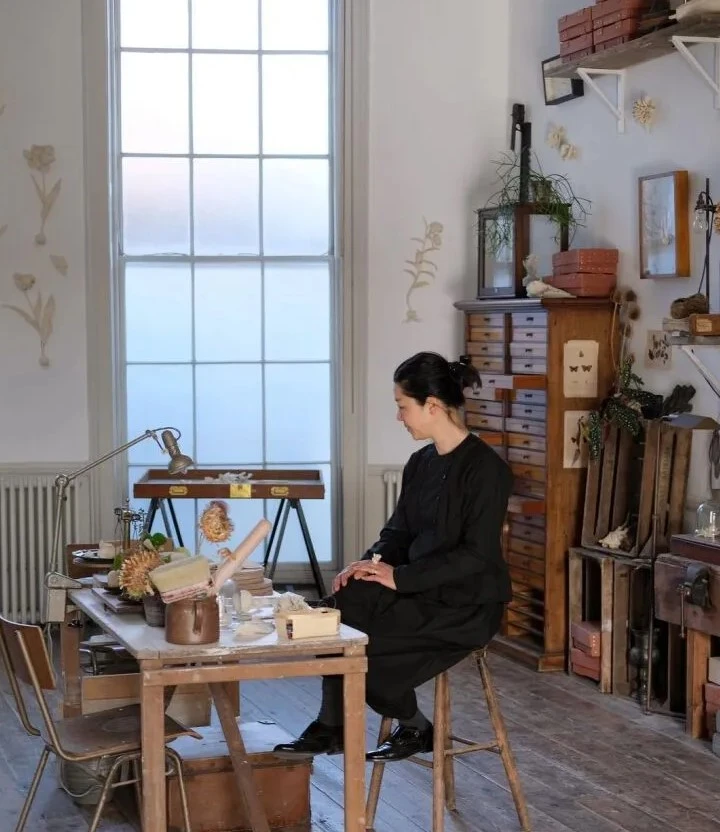 Pero la exposición mostraba un poco más del alma de Kaori. Cuando Tristan Hoare, el propietario de la galería, visitó su estudio en Camberwell, quedó maravillado por el entorno que la inspiraba, así que le pidió que lo instalara temporalmente en una de las salas de The Walled Garden. Así, por ejemplo, los visitantes pudieron ver un armario de cajones comprado a un anticuario que había servido para almacenar cientos de mariposas en el British Museum. Paradójicamente, ahora varias de ellas se posaban libres en las paredes de la muestra.