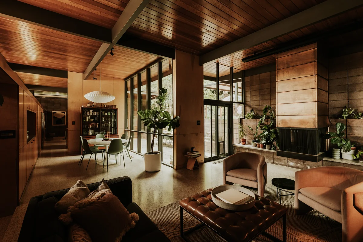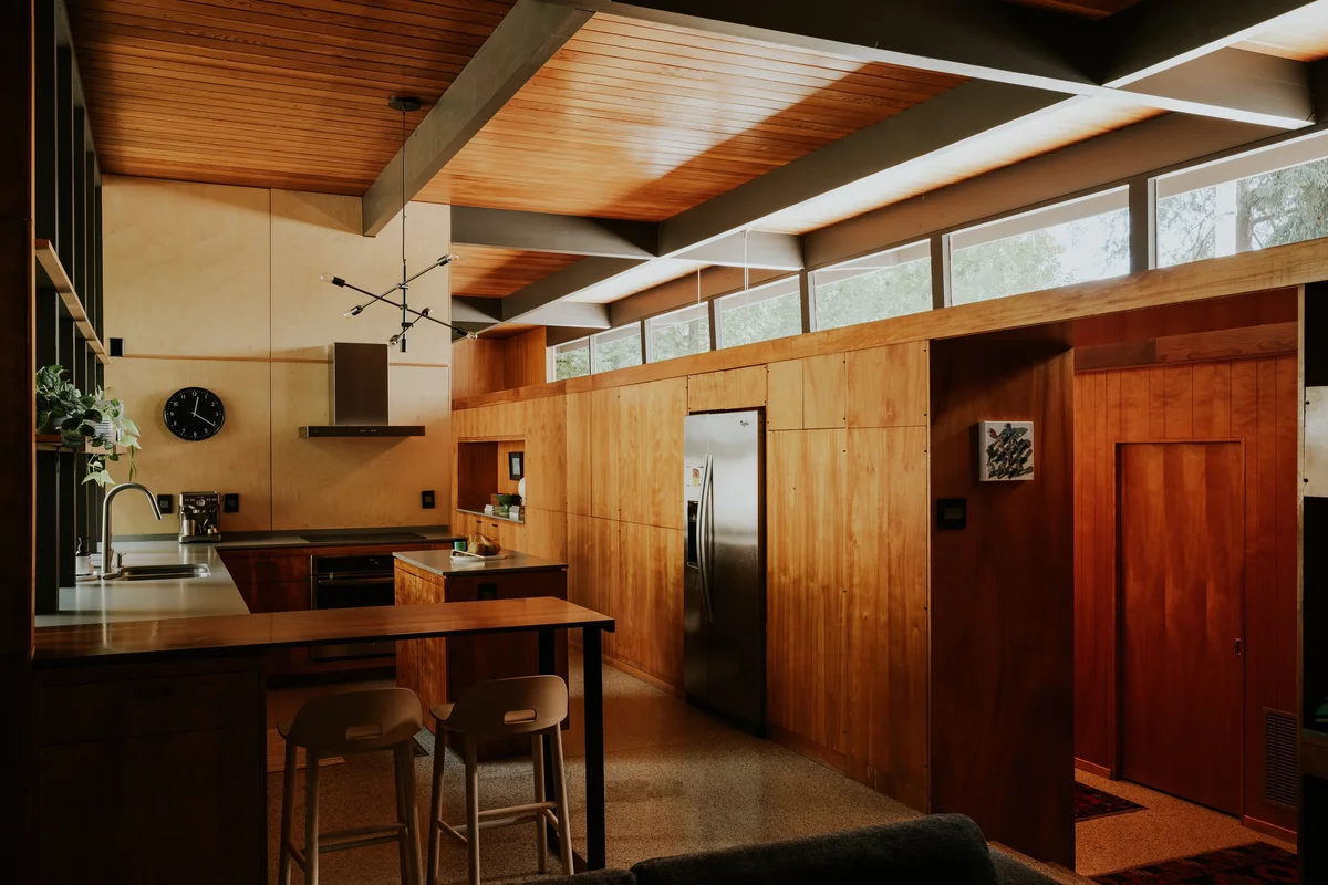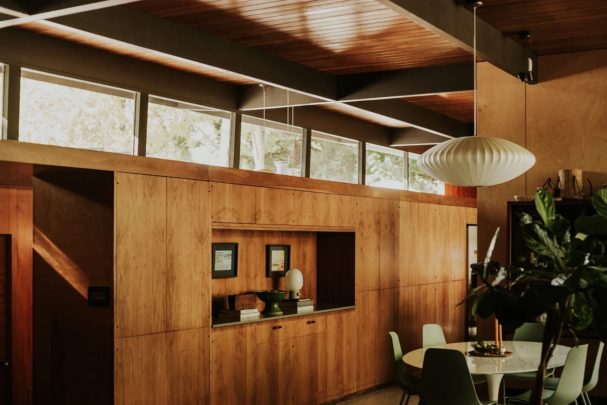 Ubicada en una colina suburbana, la Residencia Nittler combina elementos distintivos del modernismo con una adaptabilidad sorprendente a las necesidades contemporáneas. El hogar, que ha mantenido gran parte de su carácter original, cuenta con paneles de madera, pisos de terrazo, una entrada con escalera de caracol y chimeneas con fachada de cobre. Estos elementos no solo embellecen el espacio, sino que también reflejan la atención al detalle y la calidad de los materiales que caracterizan la obra de Carter.